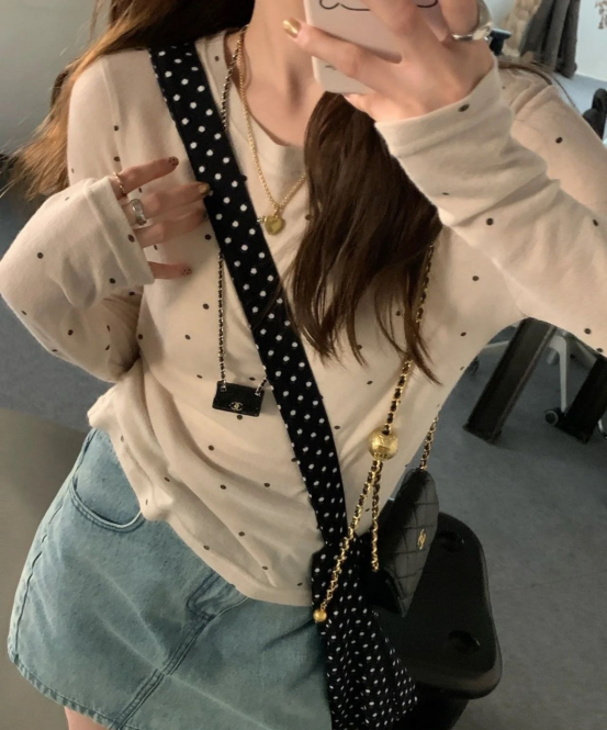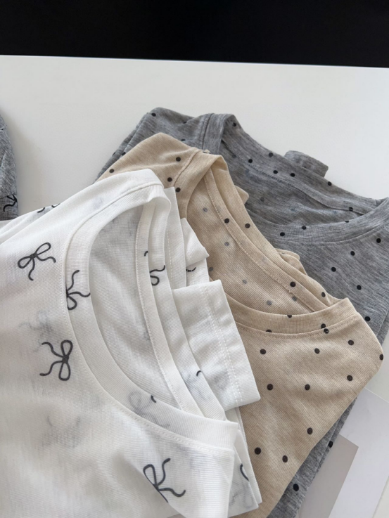 ins设计感薄款内搭打底衫 波点和蝴蝶结元素今年真的特别流行❗️ 是第一眼看着还可以,然后越看越好看的衣服