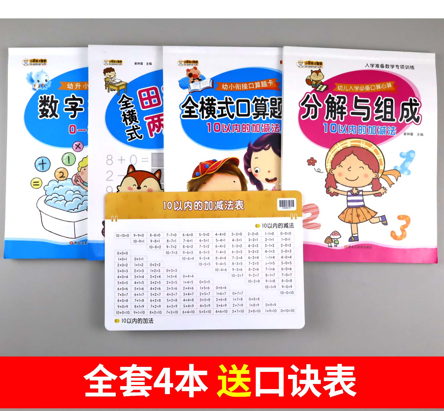 全套4册 10以内加减法天天练田字格十以内分解与组成的练习册儿童数学数字幼儿加法减法口算题卡幼儿园大班幼小衔接一日一练算术题