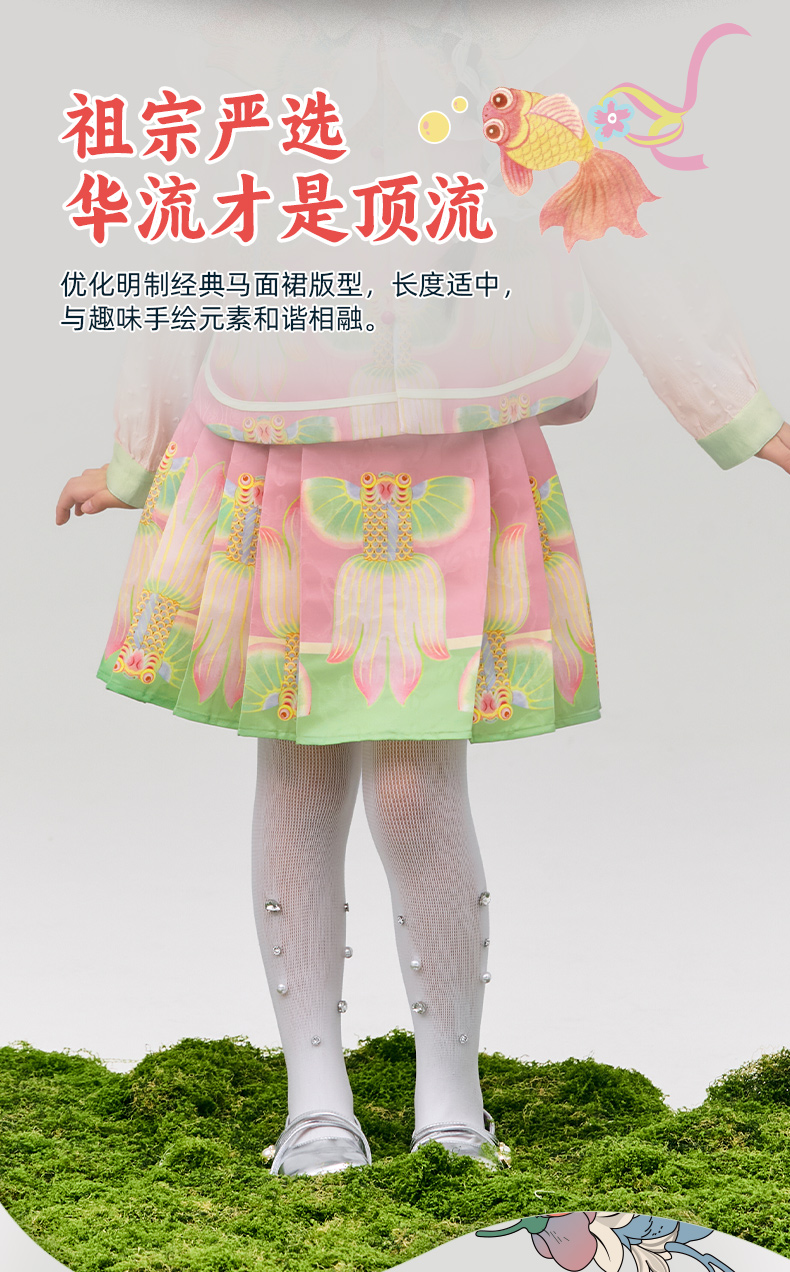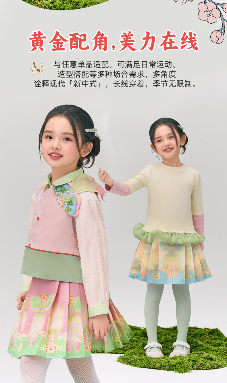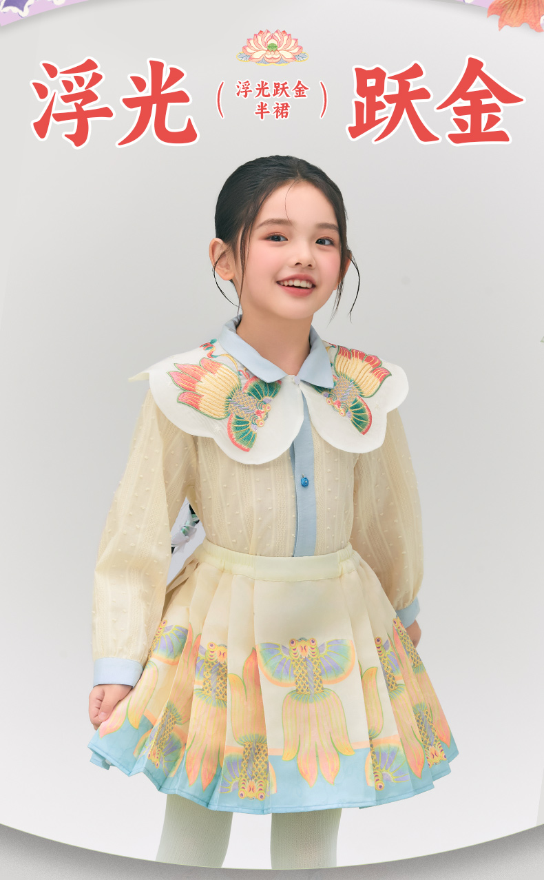 年衣童装女童短款马面裙半身裙2025春款古风古装儿童汉服新中式浮光跃金半裙