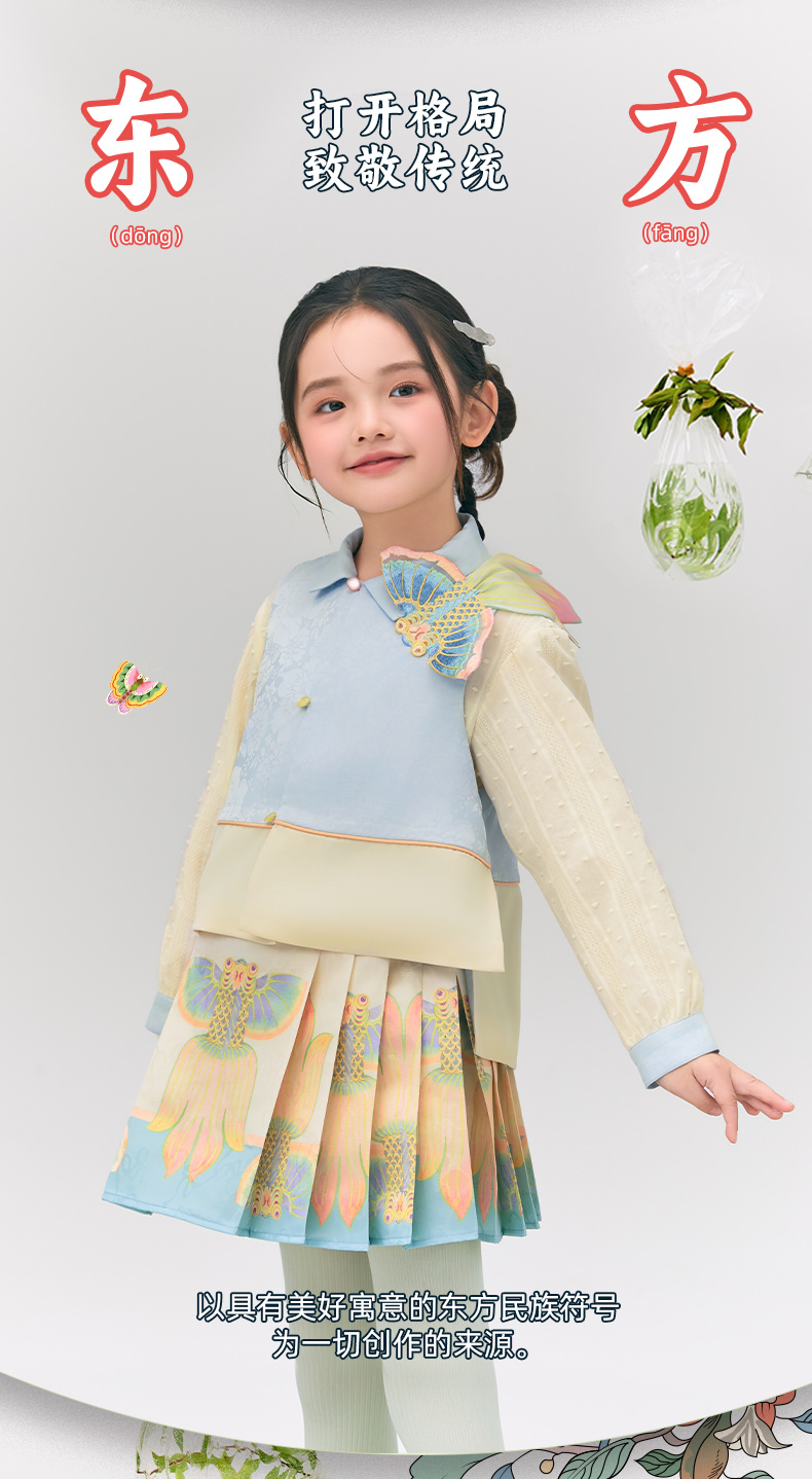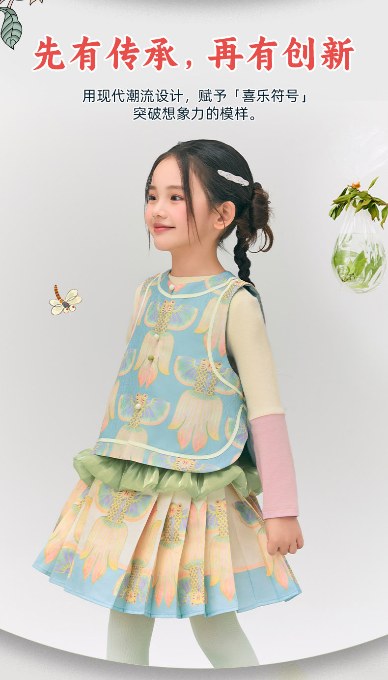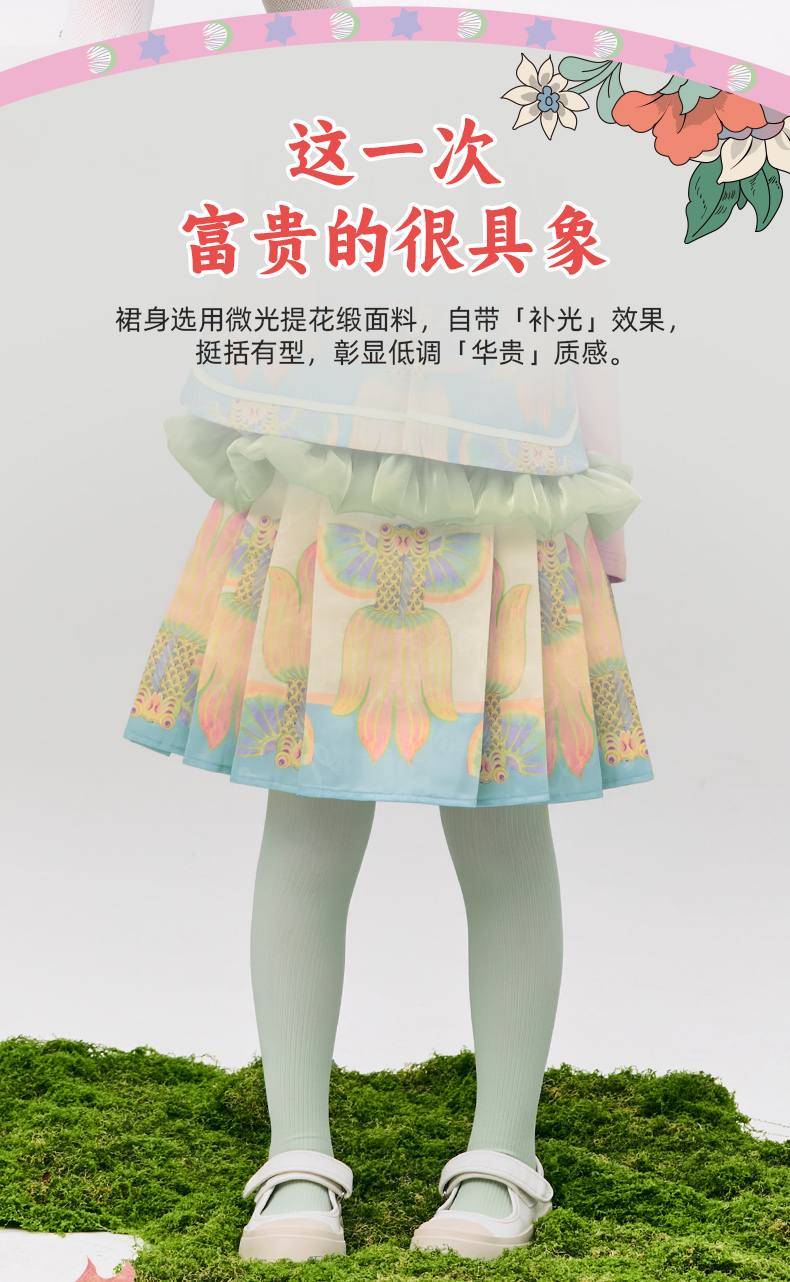 年衣童装女童短款马面裙半身裙2025春款古风古装儿童汉服新中式浮光跃金半裙