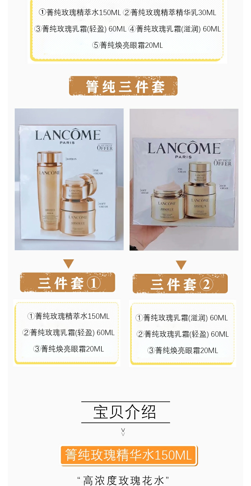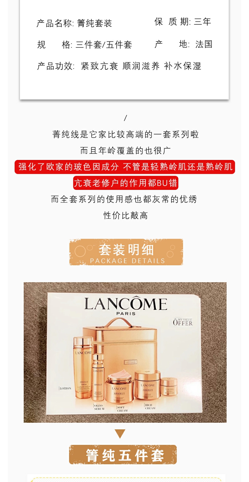 【YZ】兰蔻菁纯三件套五件套面霜 菁纯水 眼霜修护抗老