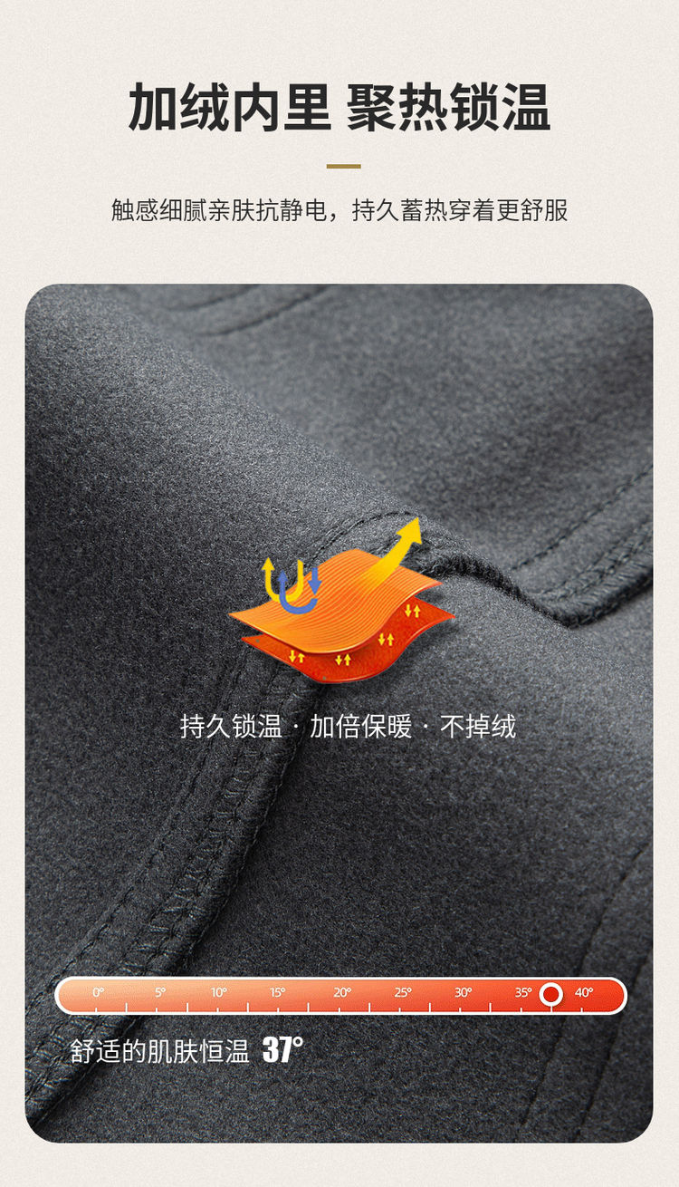 圣得西冬季款男士抗菌远红外传热加绒加厚弹力商务休闲裤2362915715