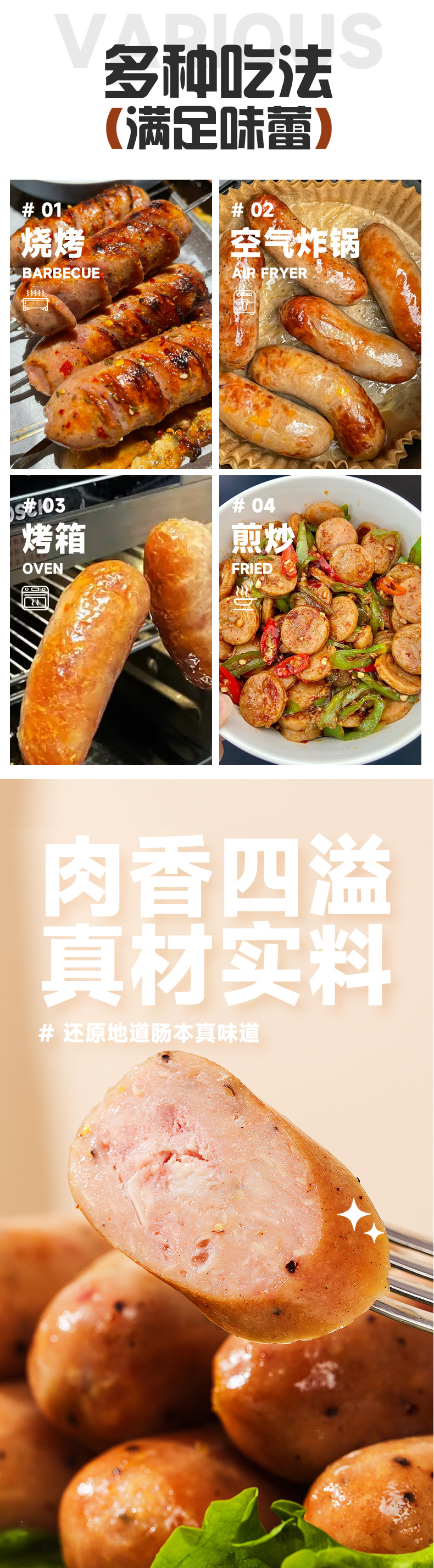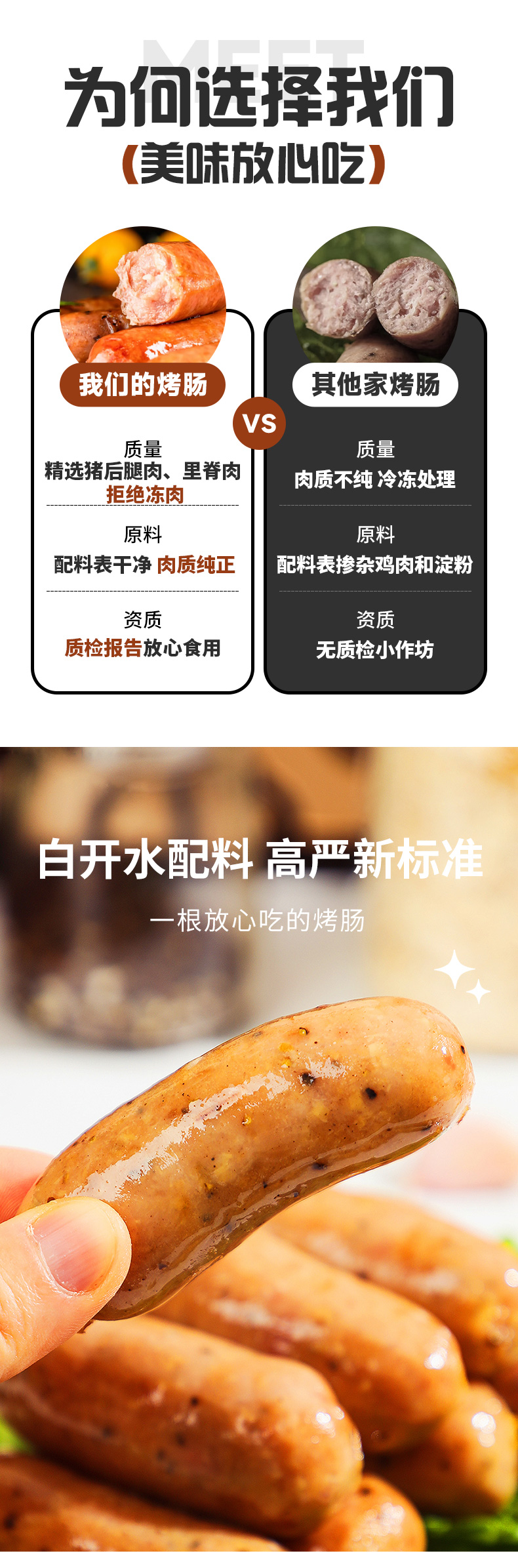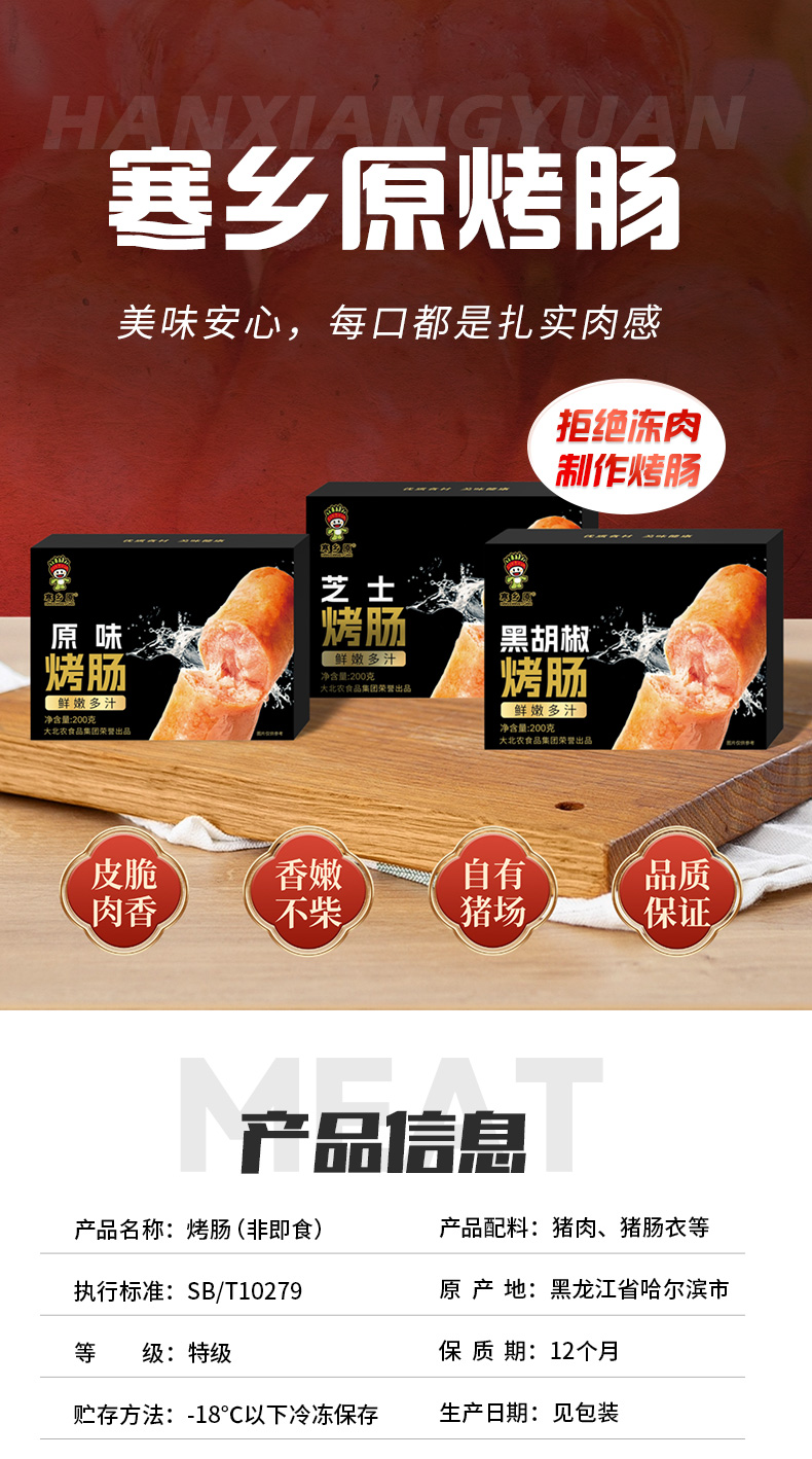 [4盒]寒乡原原味黑胡椒爆汁鲜肉烤肠无淀粉无冻肉爆汁200g/盒