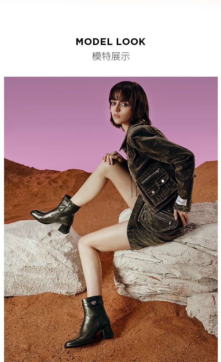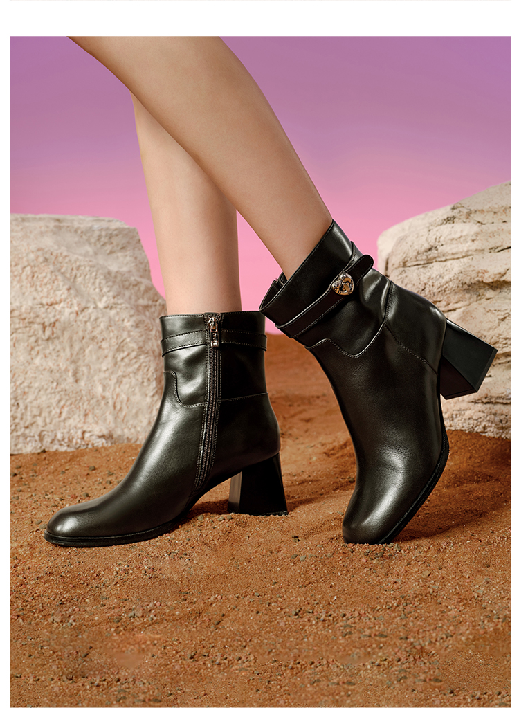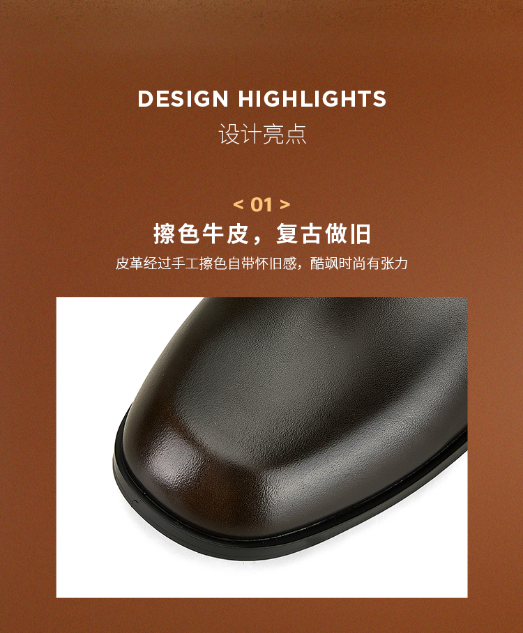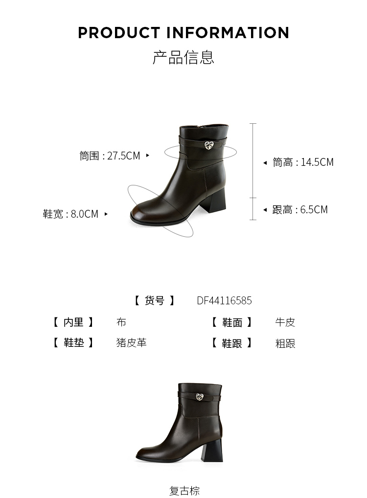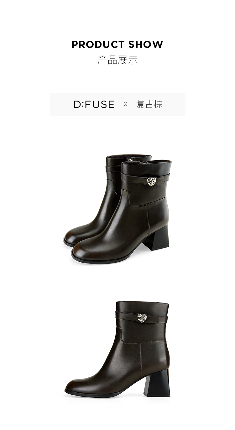 Dfuse迪芙斯2024冬季新款经典时装靴法式复古做旧擦色牛皮粗跟短靴DF44116585