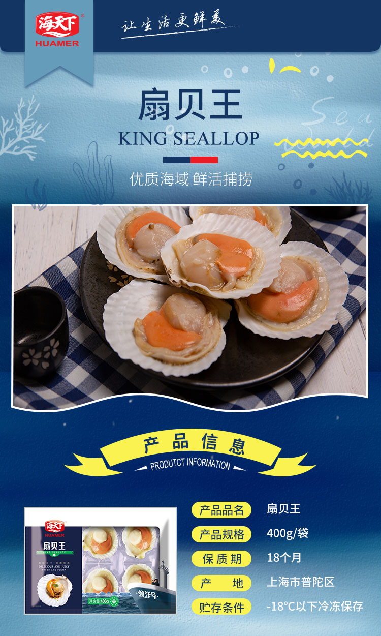 海天下扇贝王 优质海域 鲜活捕捞 (6只) 400g*1(商)