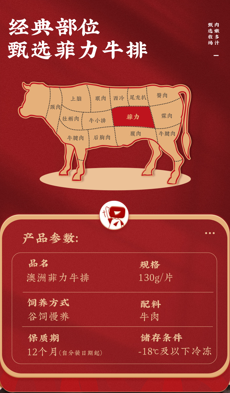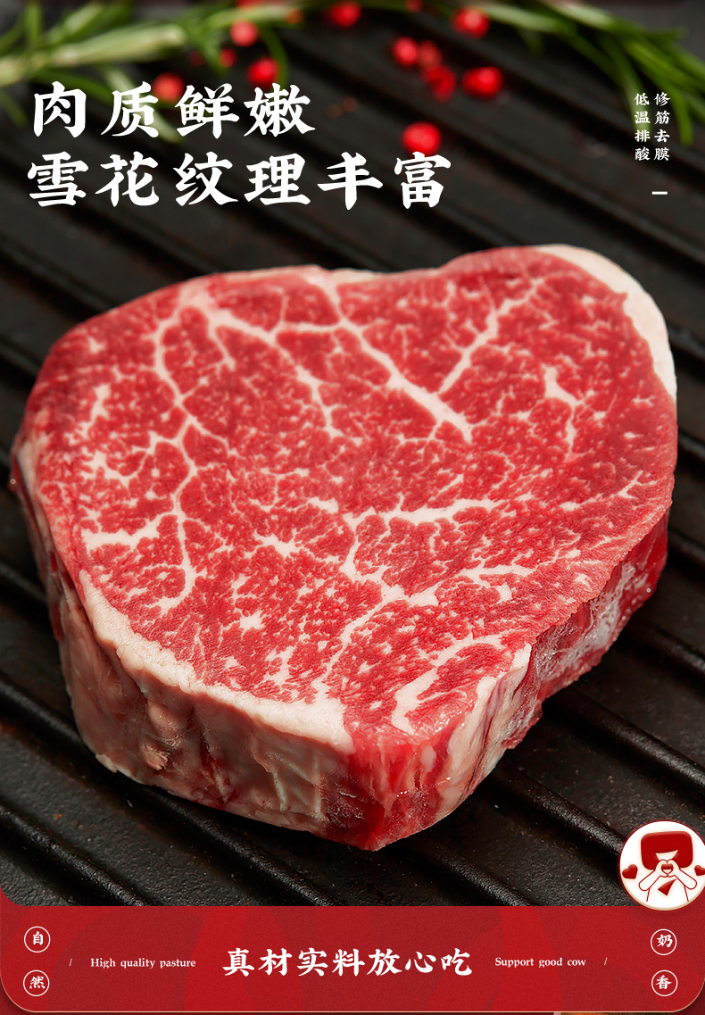华牧鲜-澳洲谷饲菲力牛排套餐 | 高钙低脂 | 5分钟快煎·无筋嫩滑 | 130g/片 宝宝牛排推荐