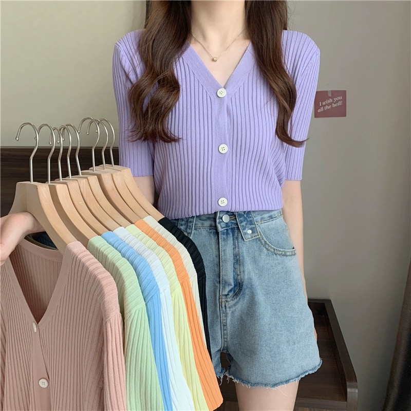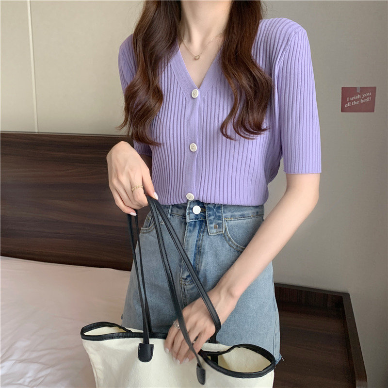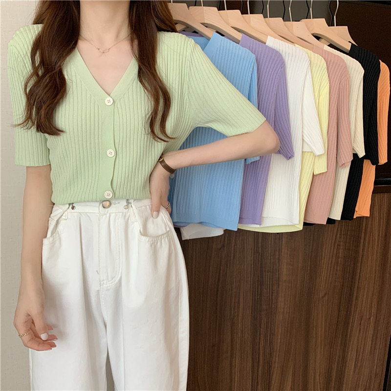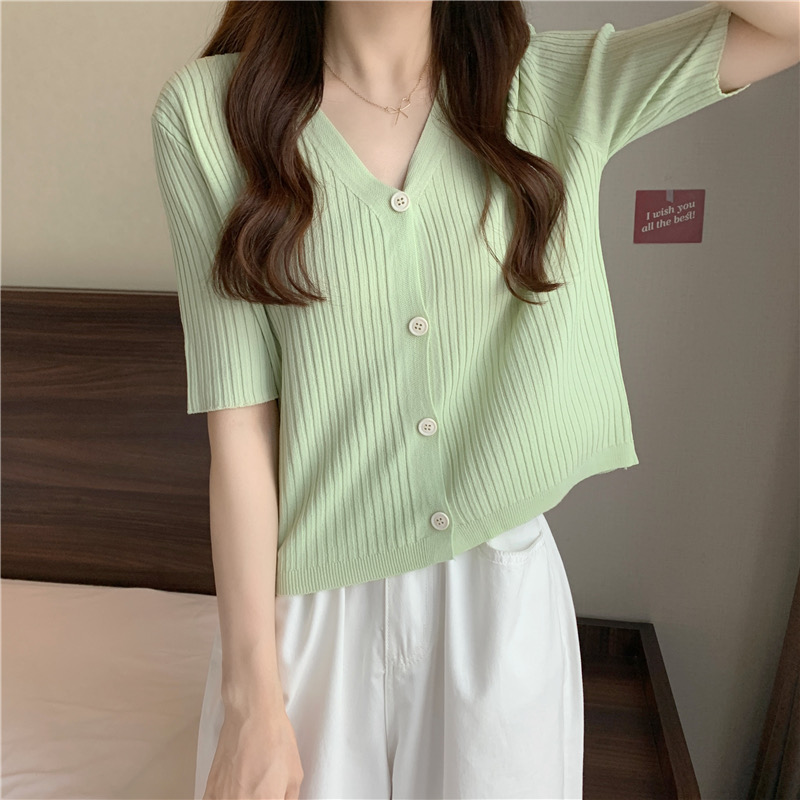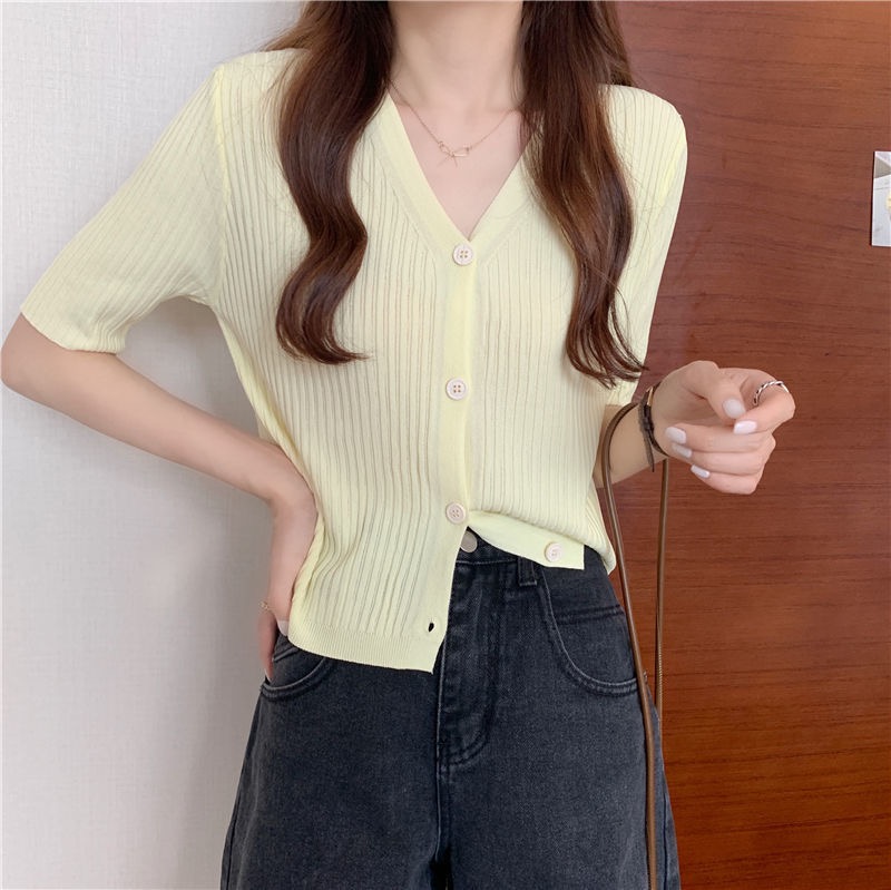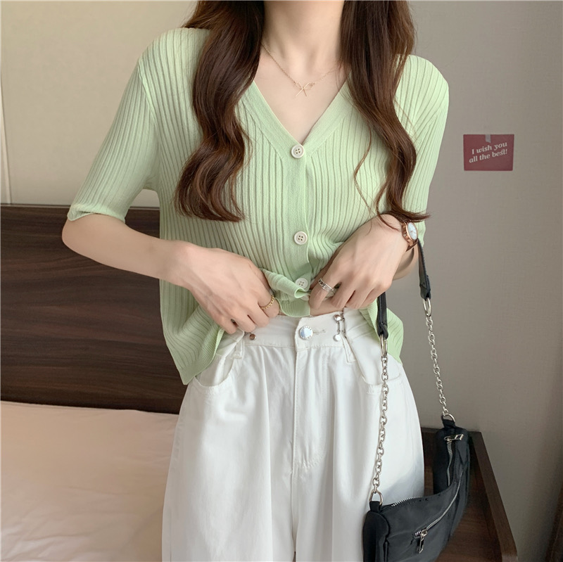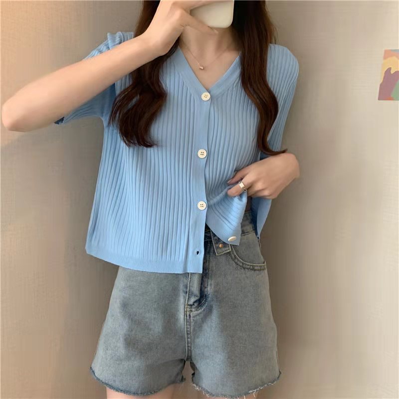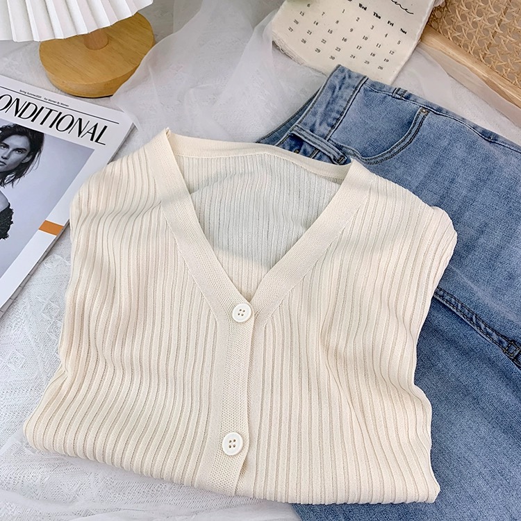 【GZ】无忧购韩系ins宽松V领冰丝防晒针织开衫0101#(截单后7天发货)
