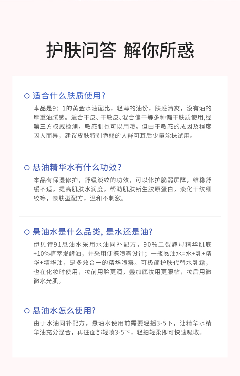 【官方】伊贝诗91悬油水干皮保湿补水喷雾舒缓修护抗皱精华爽肤水官方正品