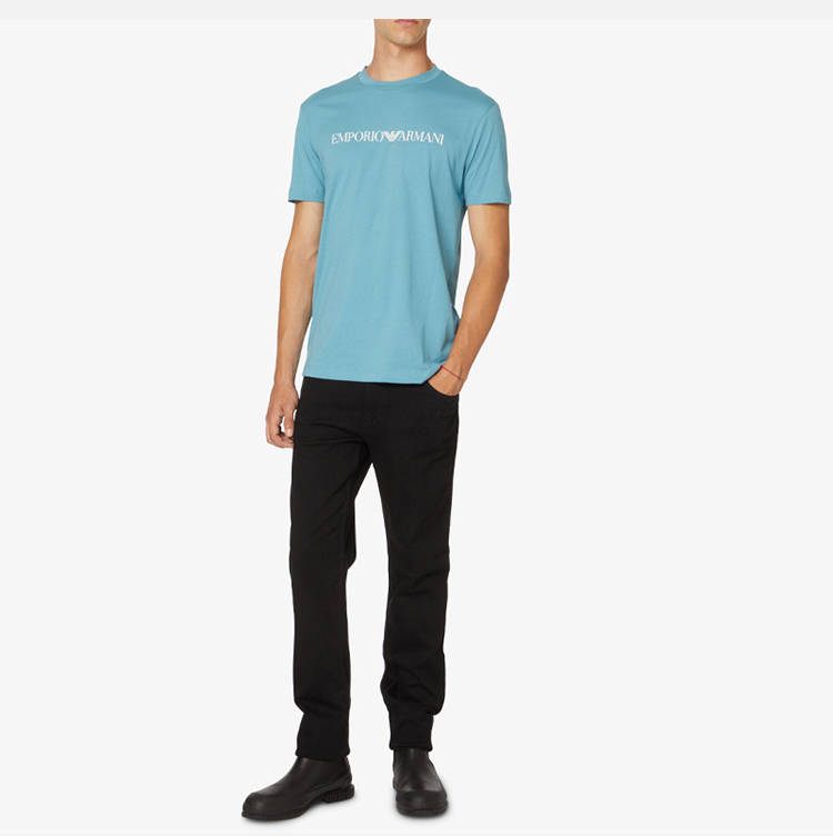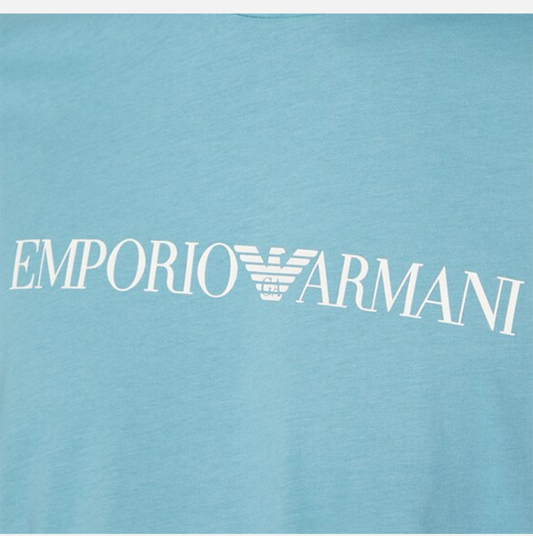 EMPORIO ARMANI 阿玛尼 男士棉质字母徽标圆领短袖T恤 浅蓝色 8N1TN5 1JPZZ 0784