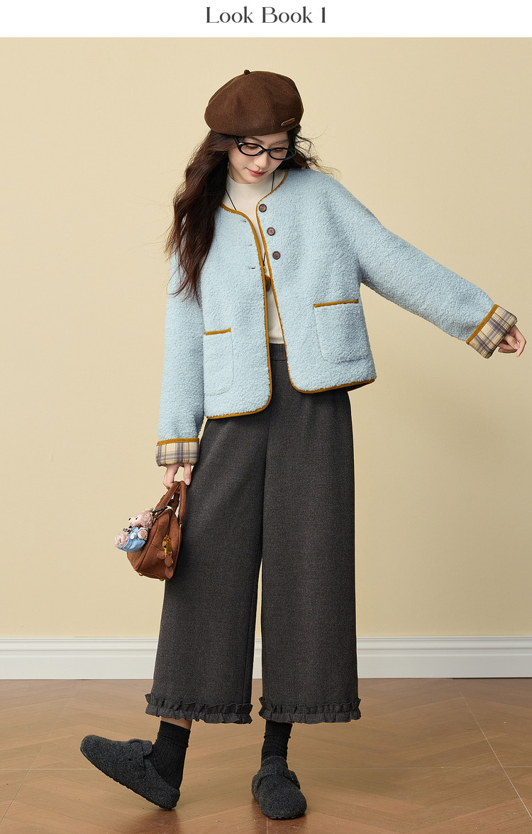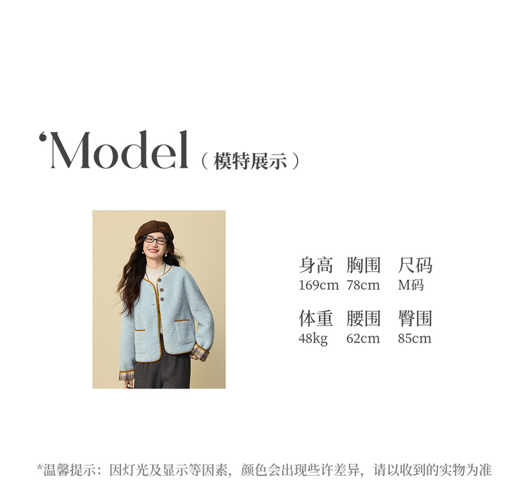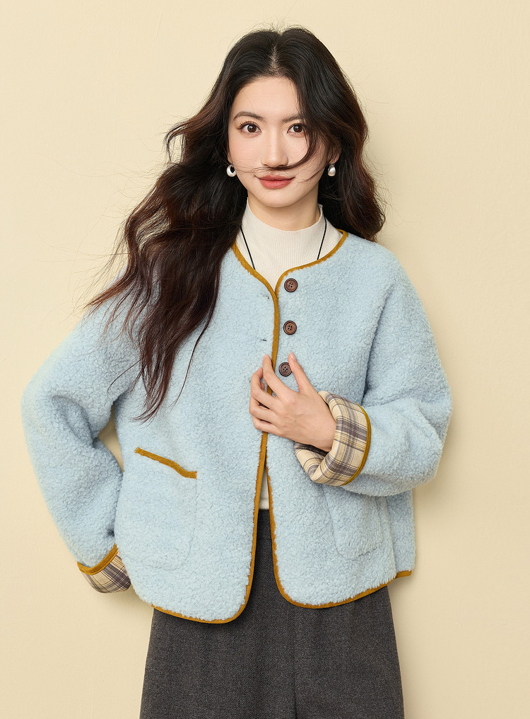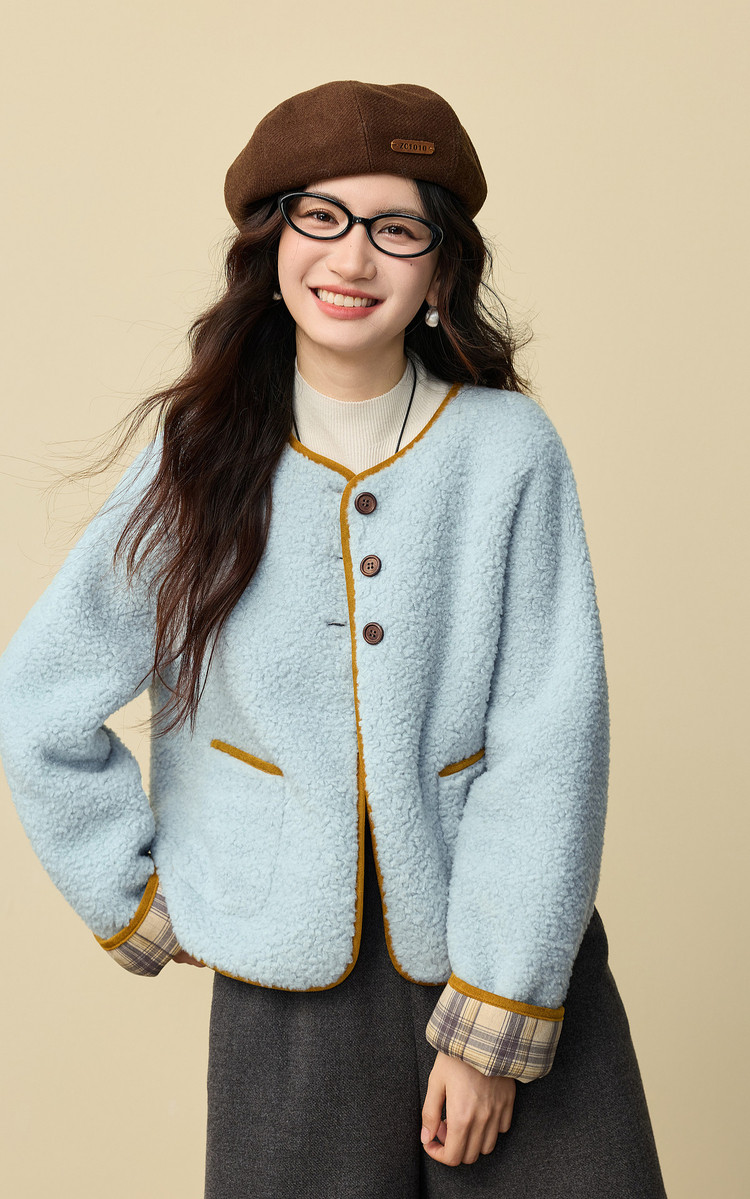 【12/24新品6.5折】熙世界小香风毛绒短外套女秋冬仿皮草小众不撞款蓝色皮毛一体上衣