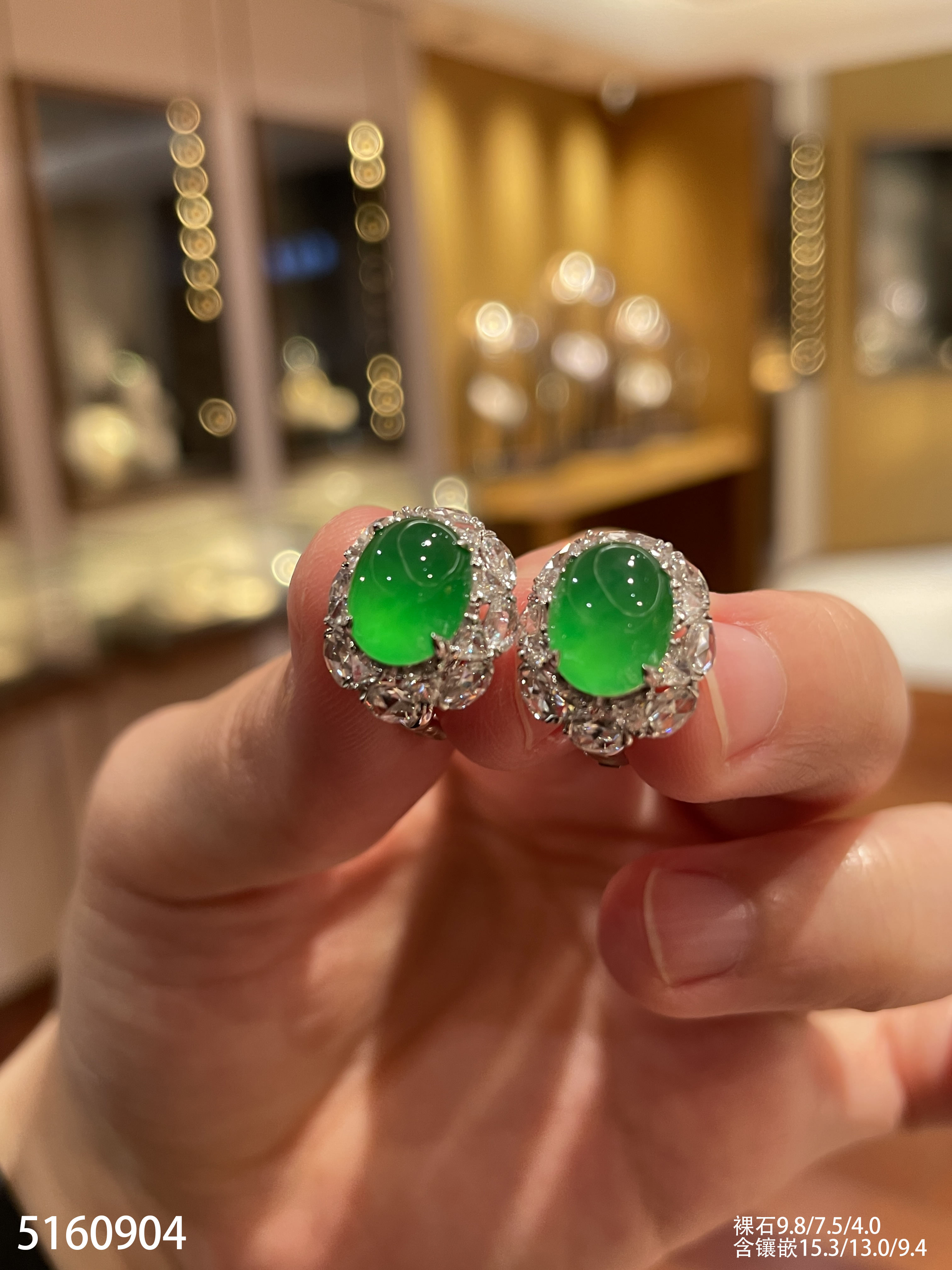 39-1212111,玻璃木那阳艳绿福豆耳钉,8999