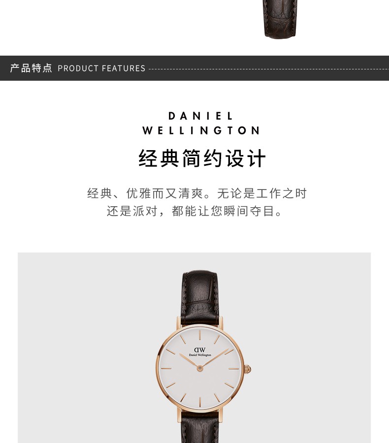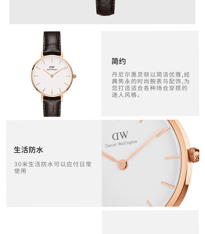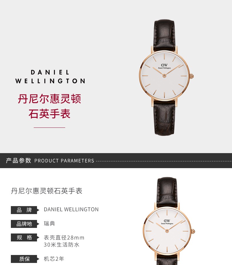 DANIEL WELLINGTON/女表金色边28mm白盘石英表DW00100232JPY带授权招加盟代理