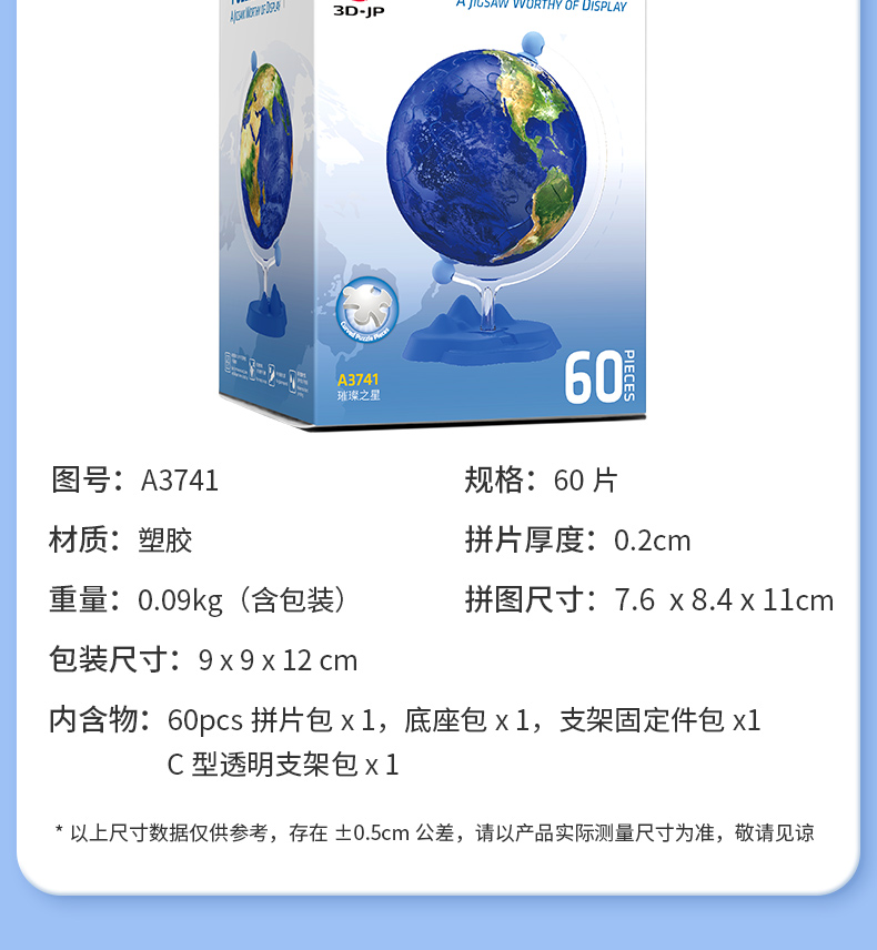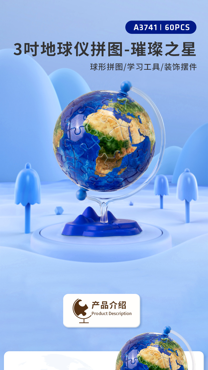 3寸 地球仪拼图 塑料拼图 A3741 璀璨之星