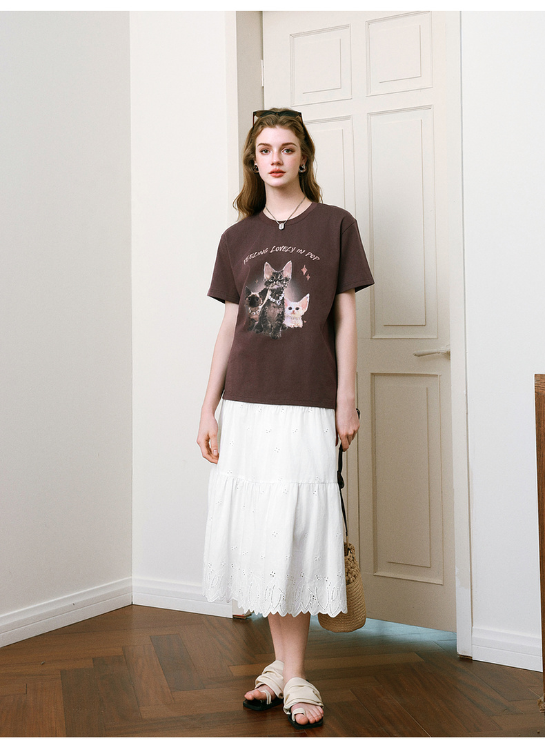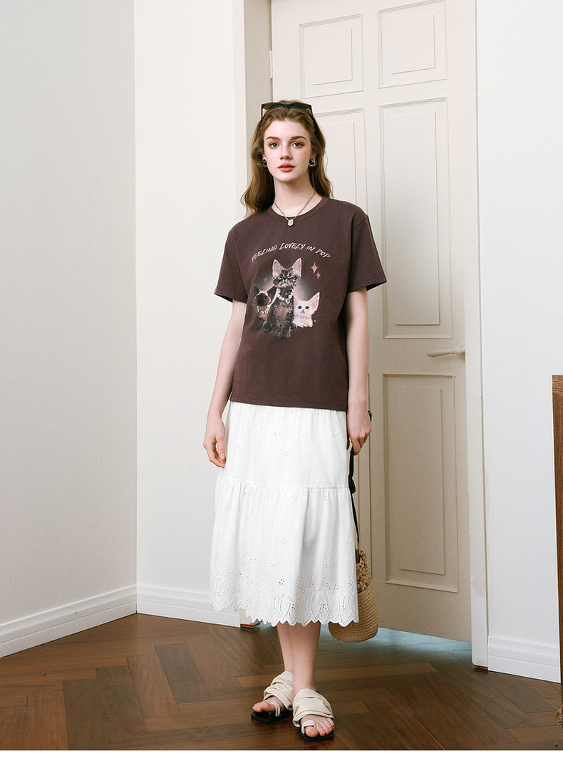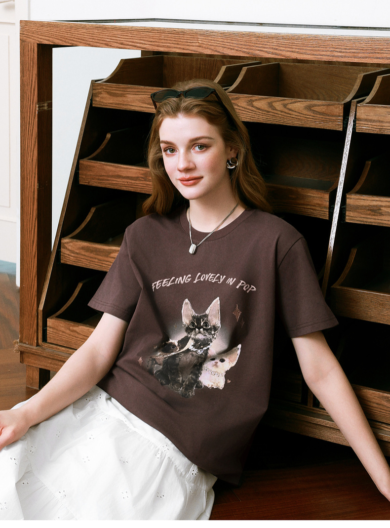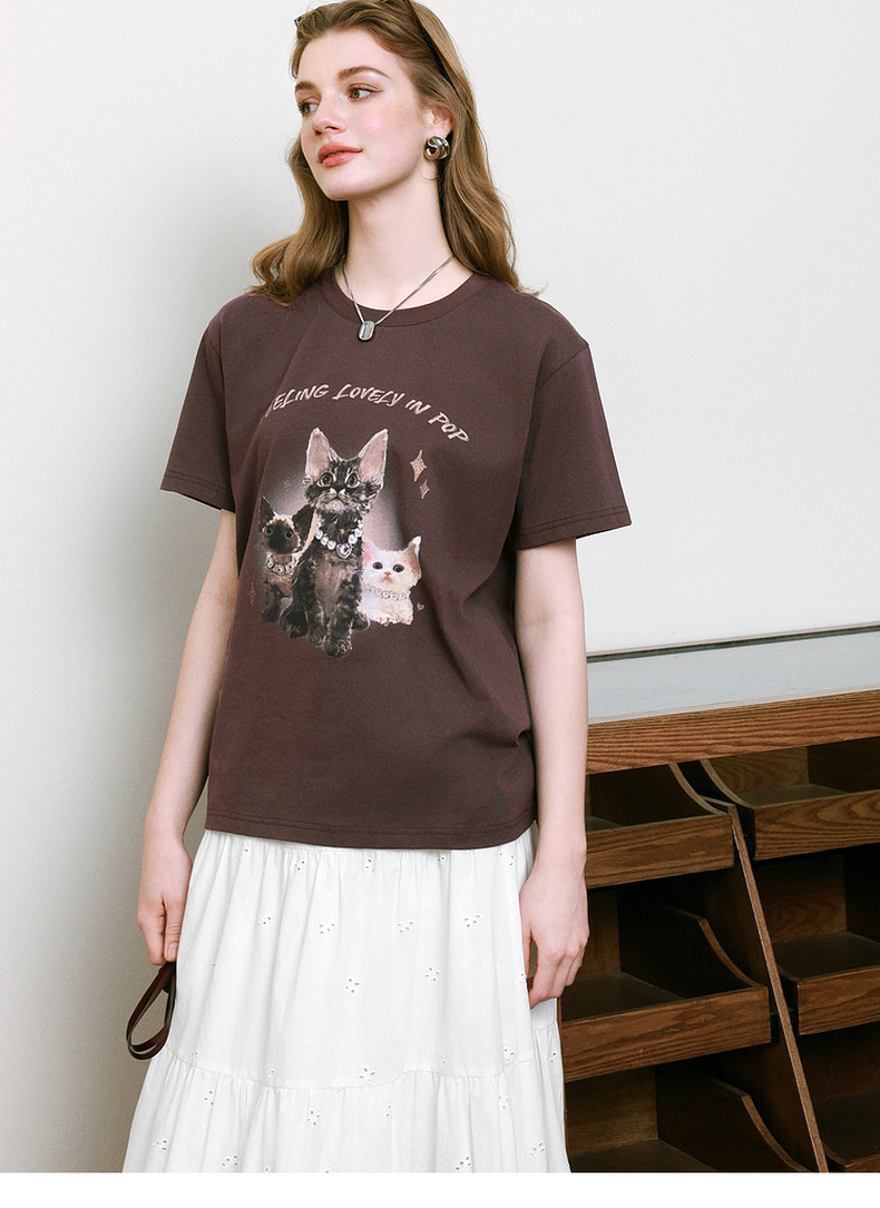 【商场同款】诗凡黎圆领小狗印花T恤2025夏新款短袖上衣3G4300741