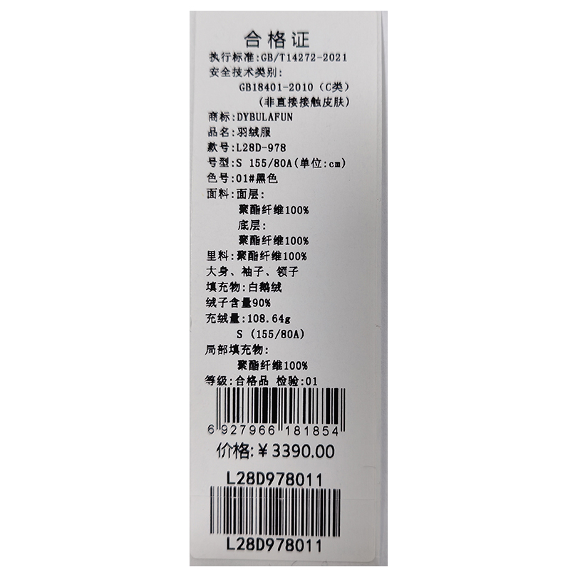 戴布拉芬羽绒服L28D978