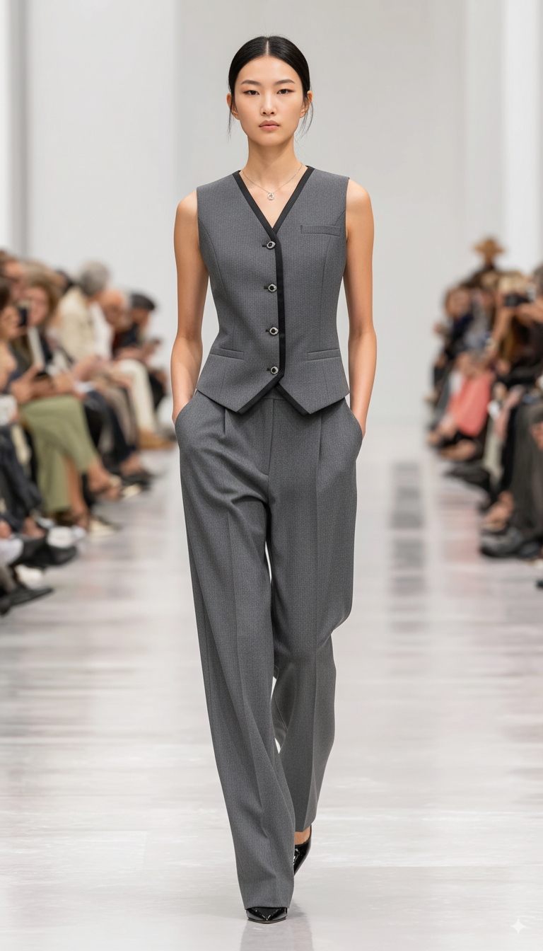 商品:Anica HN V领单排扣撞色边气质马甲(套装上)