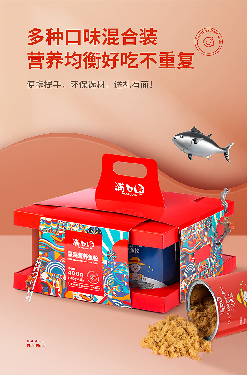 满口鱼鱼松礼盒无添加搭配肉松宝宝辅食儿童拌饭营养早餐零食 400g/4罐