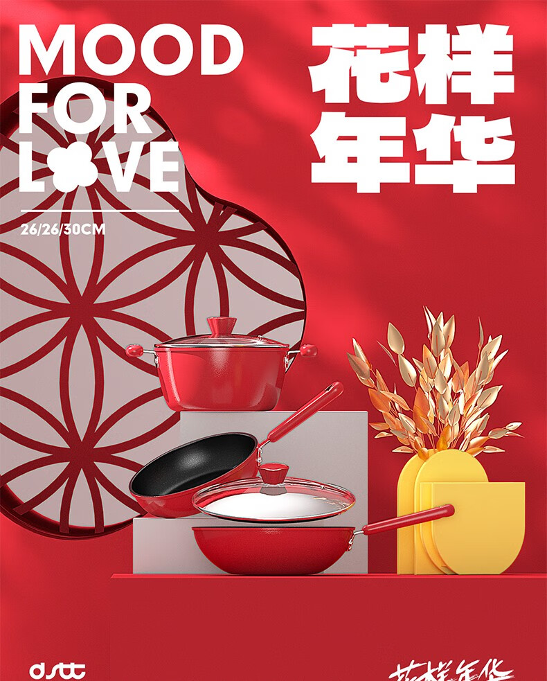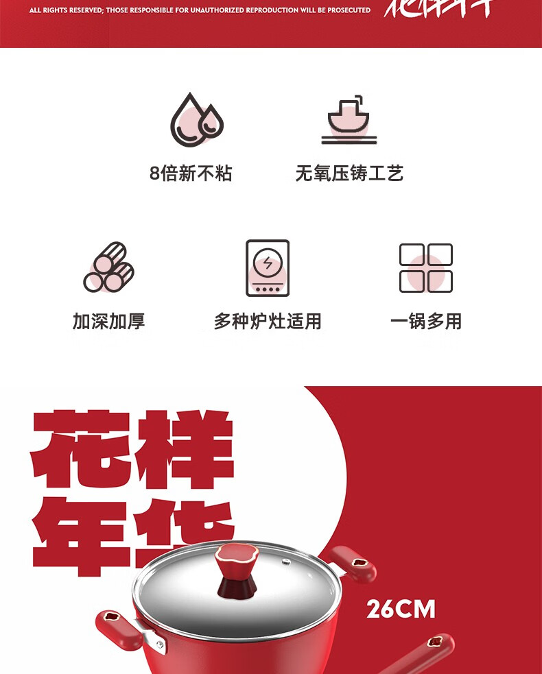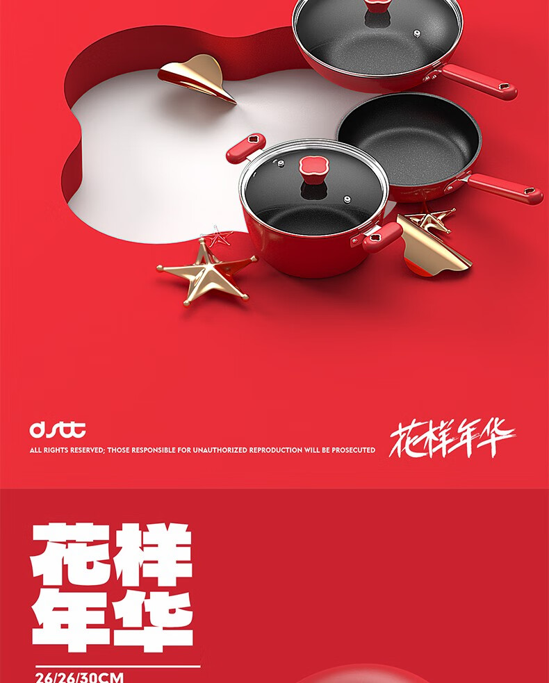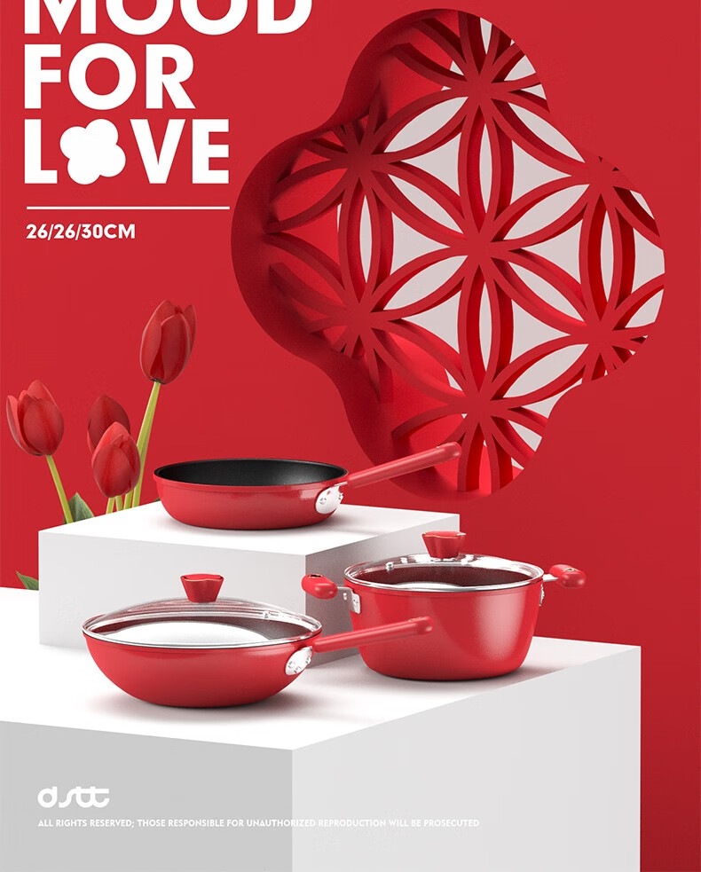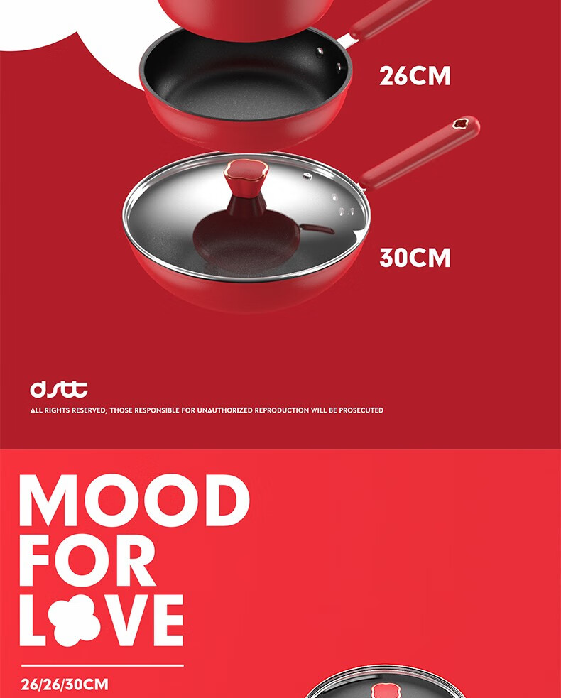 都市太太(DStt)都市太太花样年华三件套煎锅炒锅炖锅红色燃气灶电磁炉通用_红色