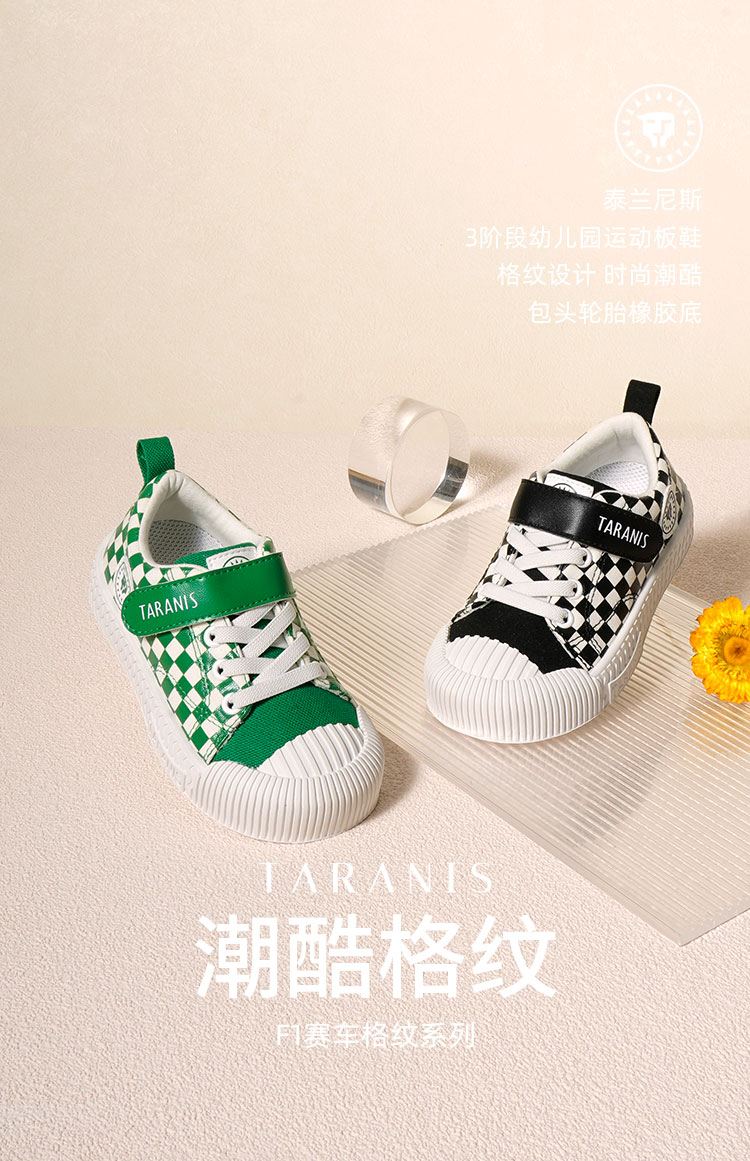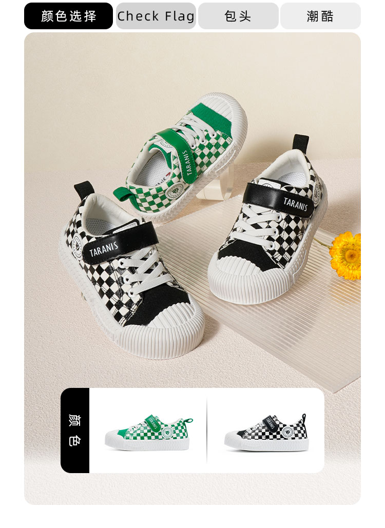 泰兰尼斯春秋季经典棋盘格帆布板鞋学步鞋T02X2C2439★⭐️