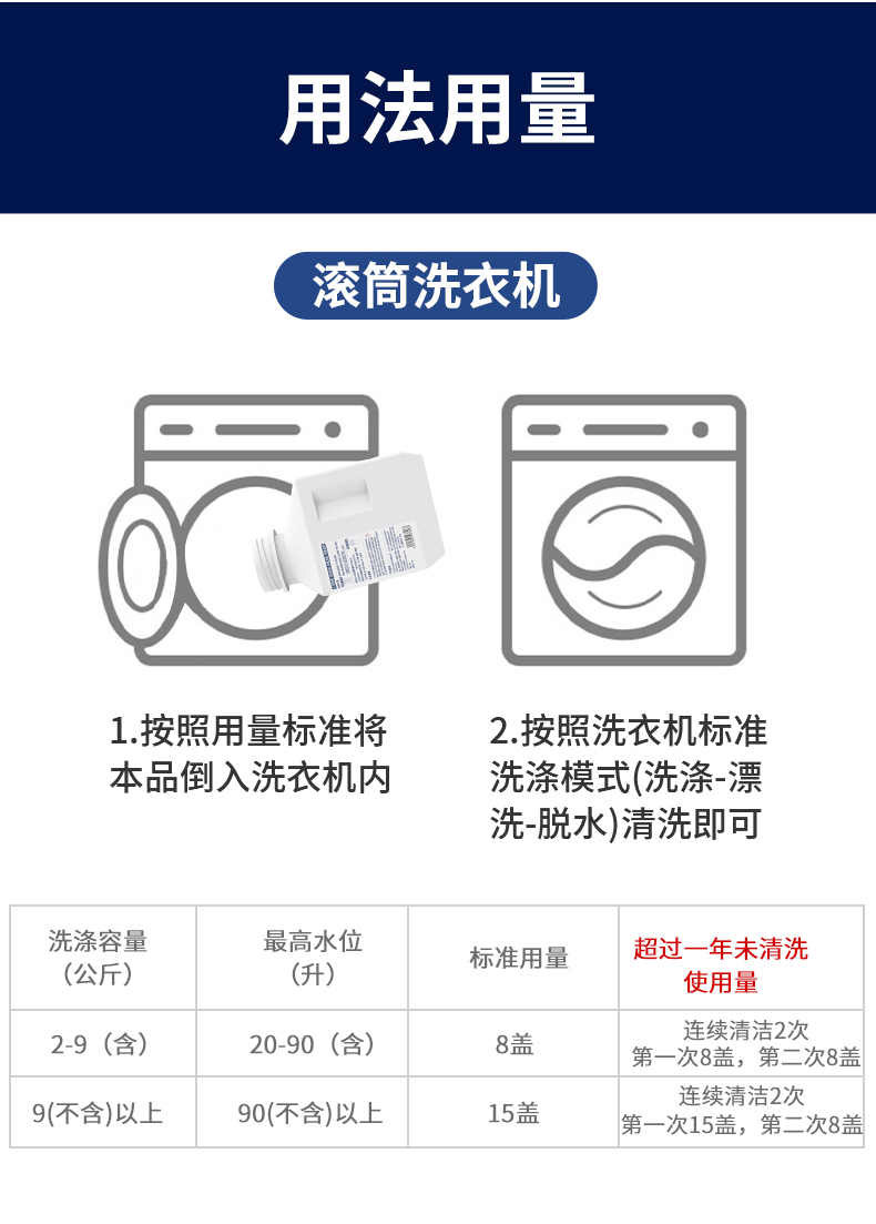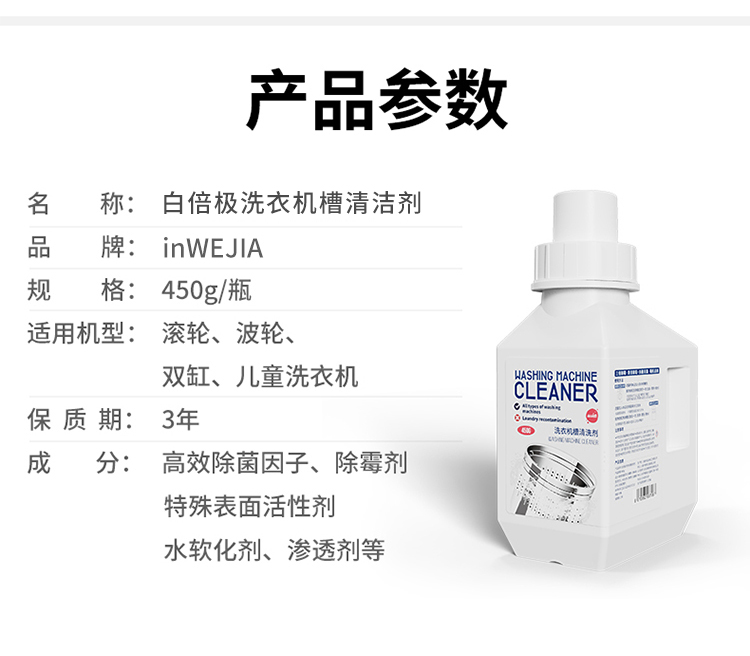 【免浸泡,1瓶用半年!】inwejia洗衣机槽清洗剂 无须浸泡即时清洗, 去污除垢杀jun率达99.9%, 滚筒波轮都可用