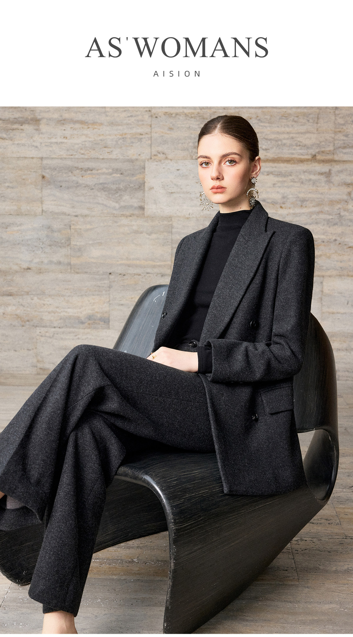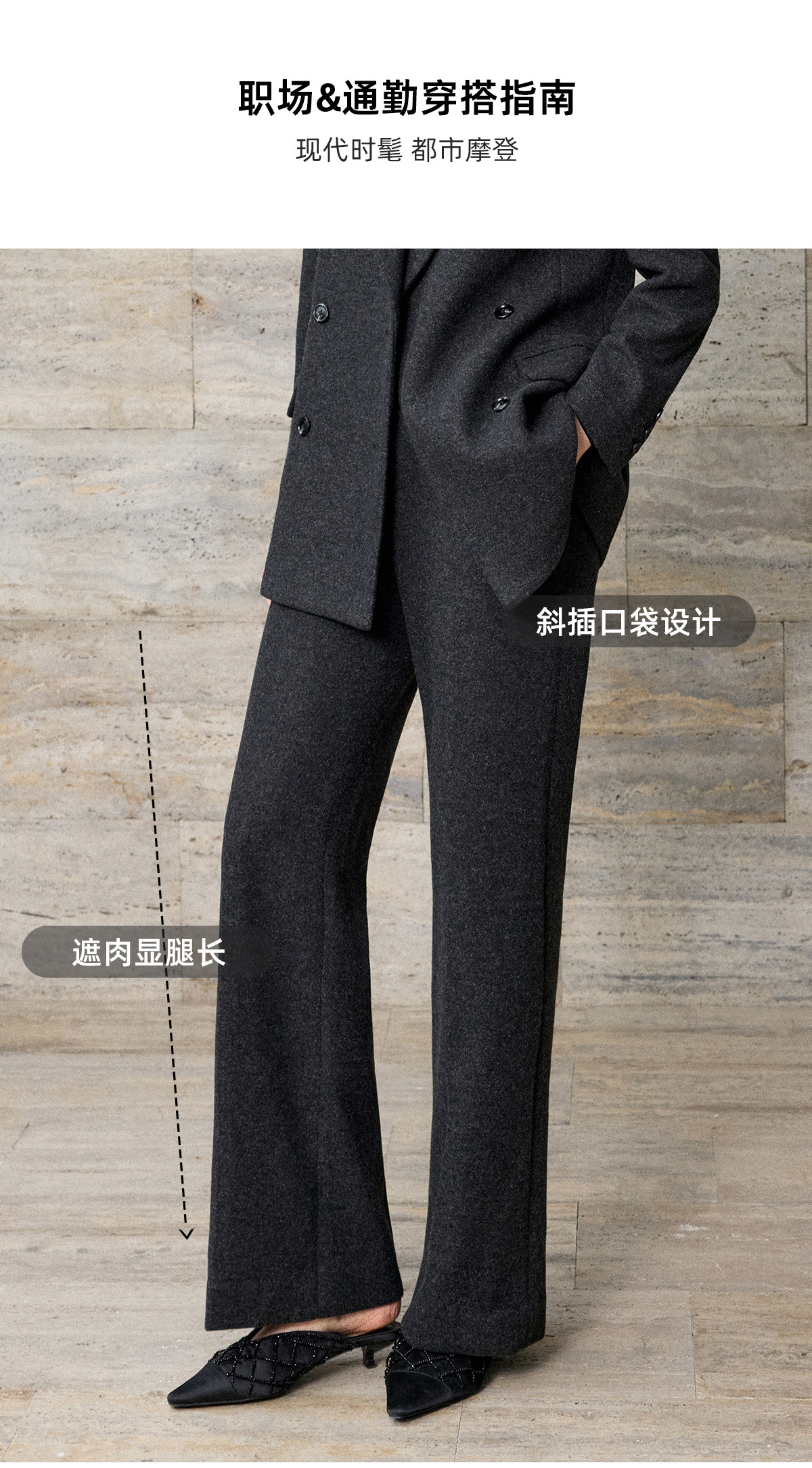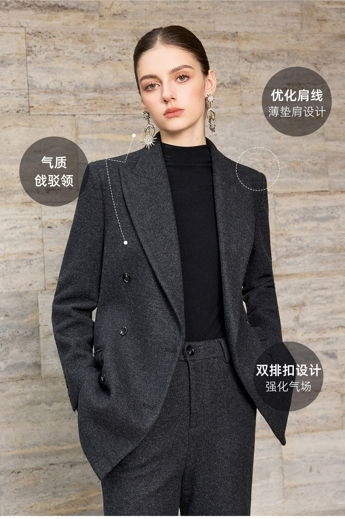 IWY/灰色毛呢西装套装女秋冬双排扣通勤工作服商务羊毛职业装WCP381