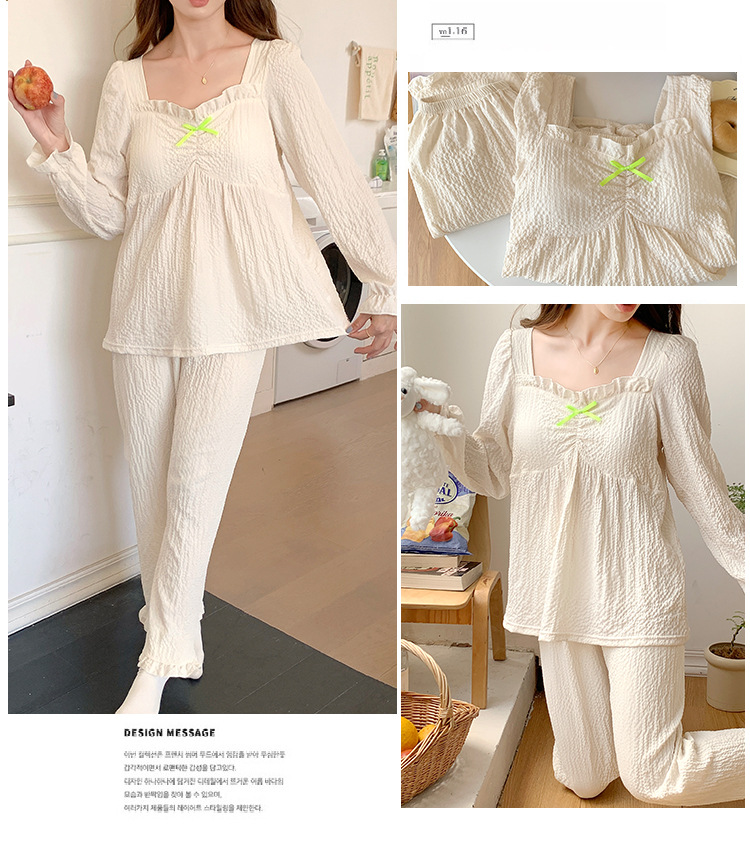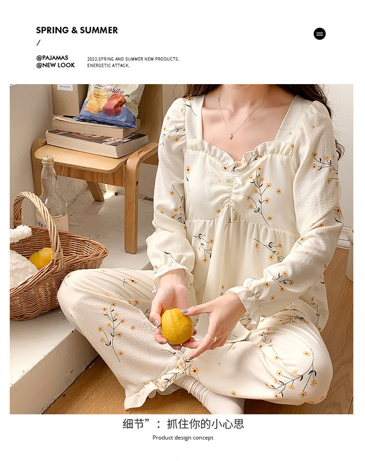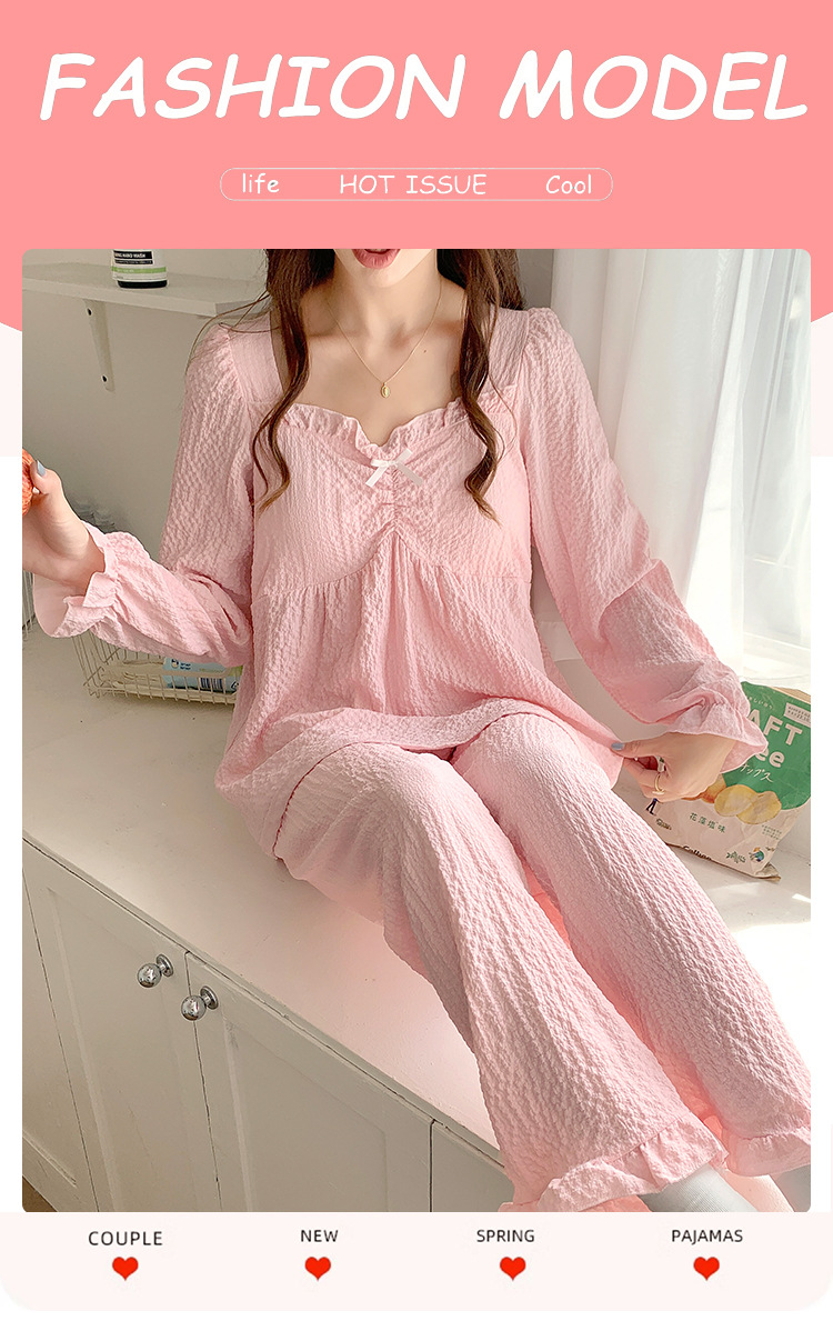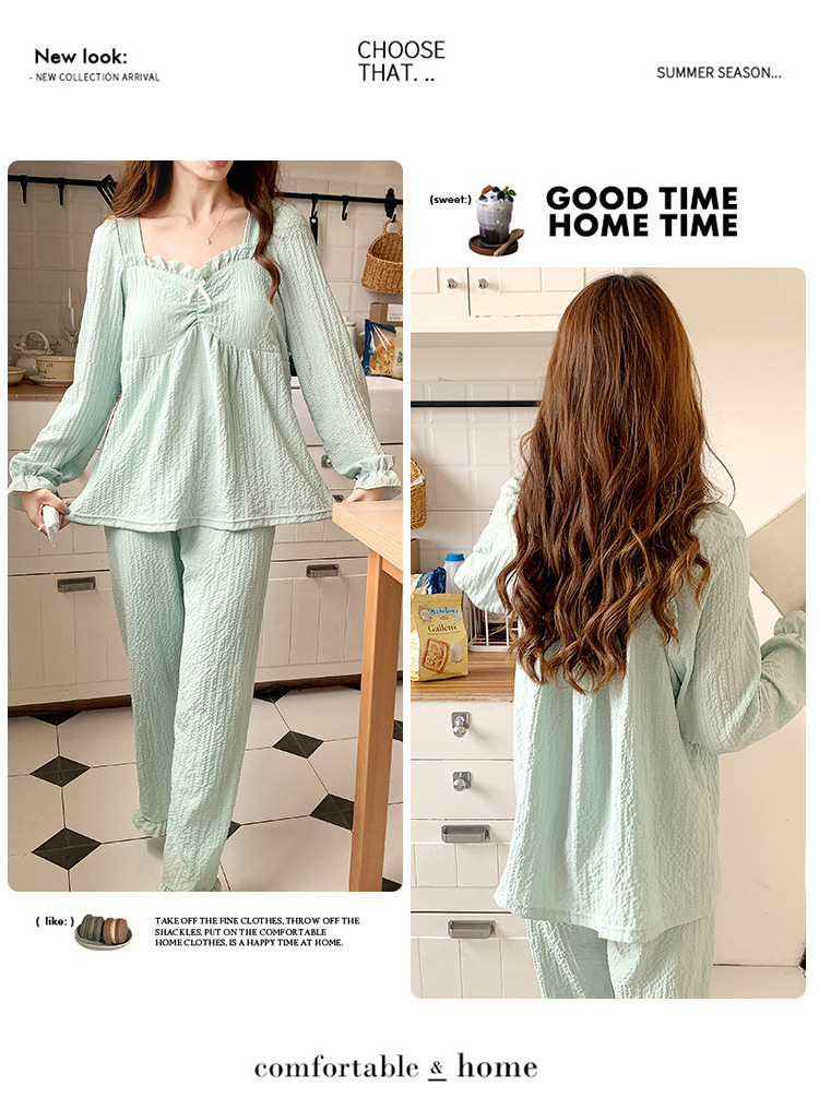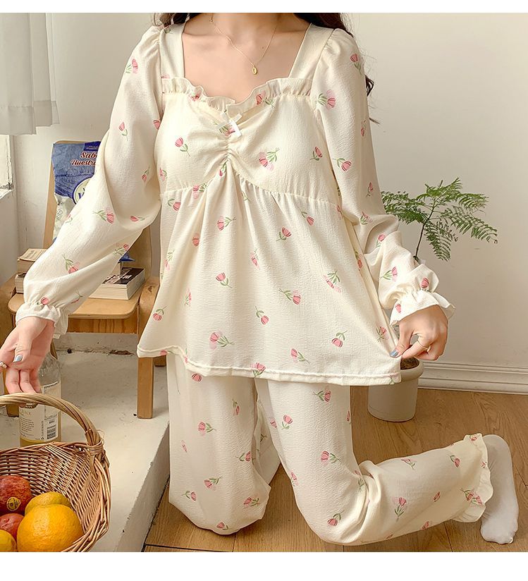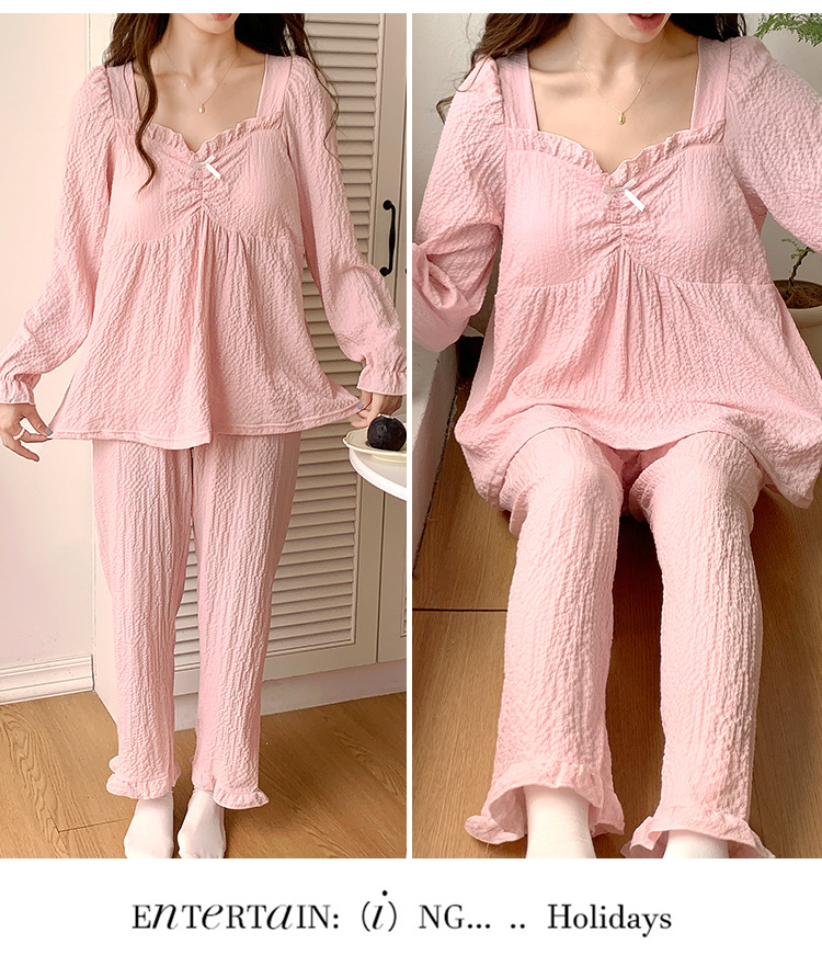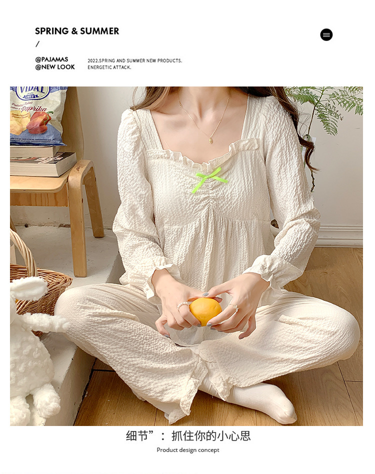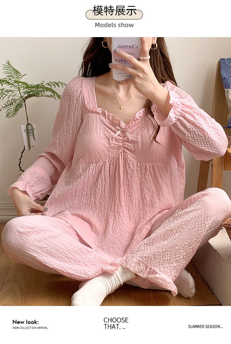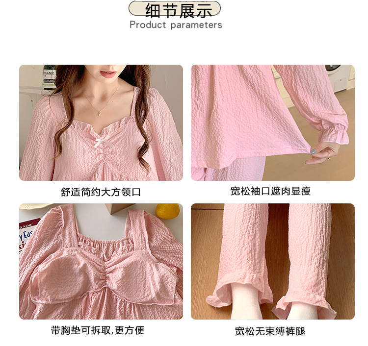 春秋款睡衣女【带胸垫长袖 花边套装】甜美公主风 V领薄款 家居服女