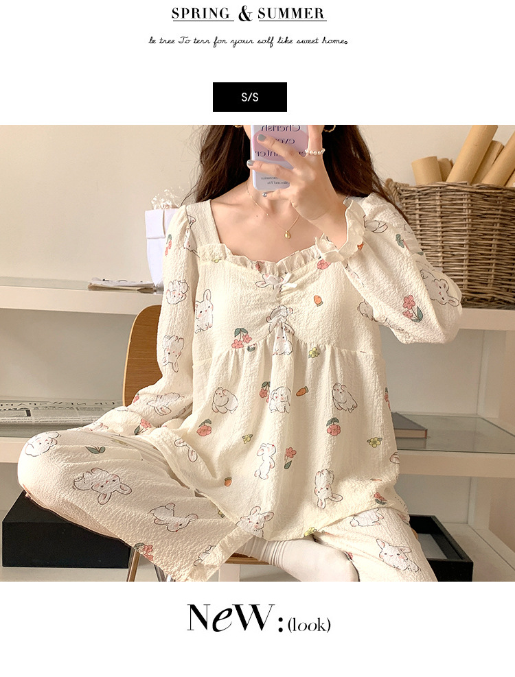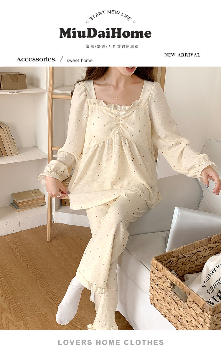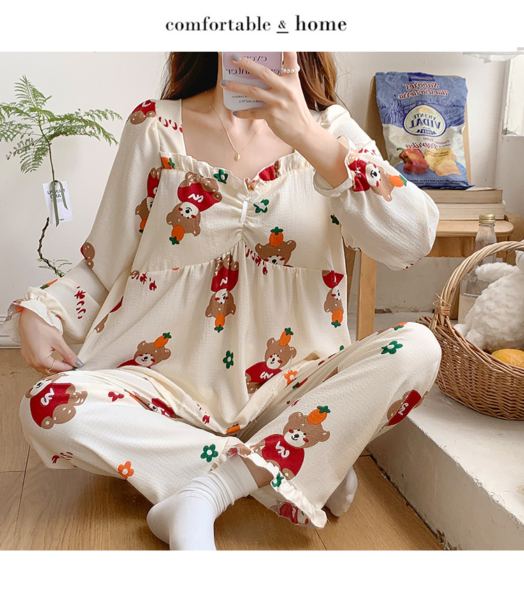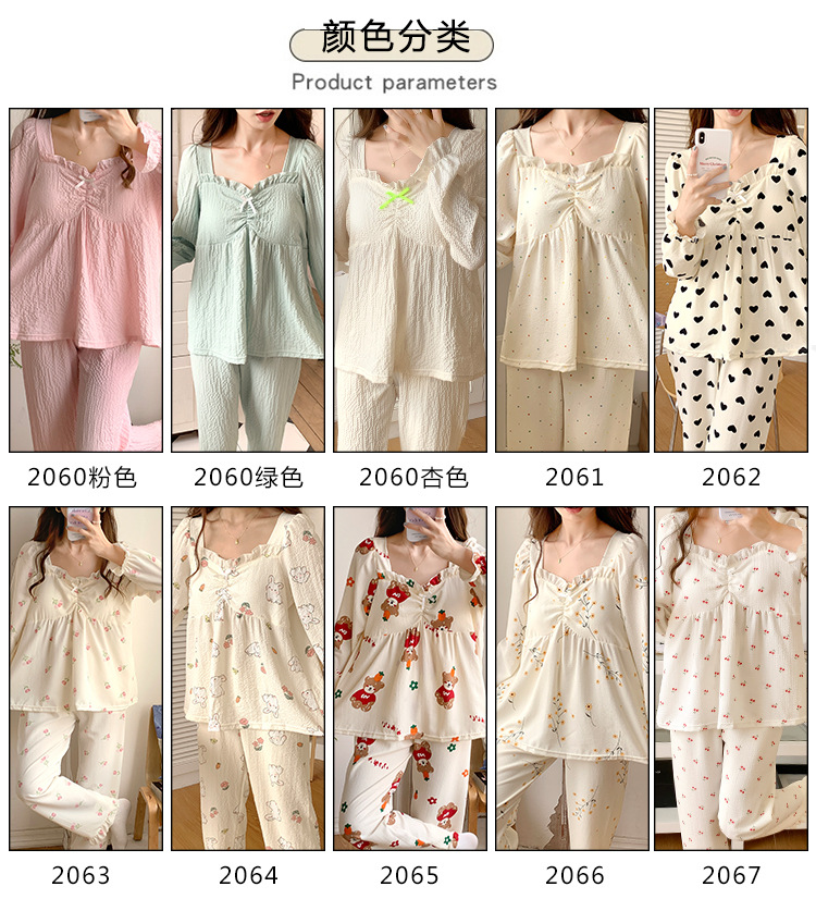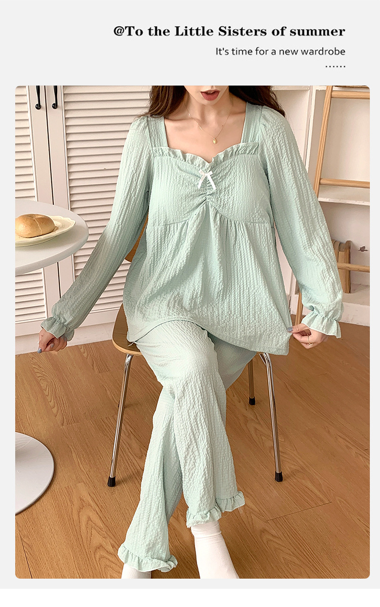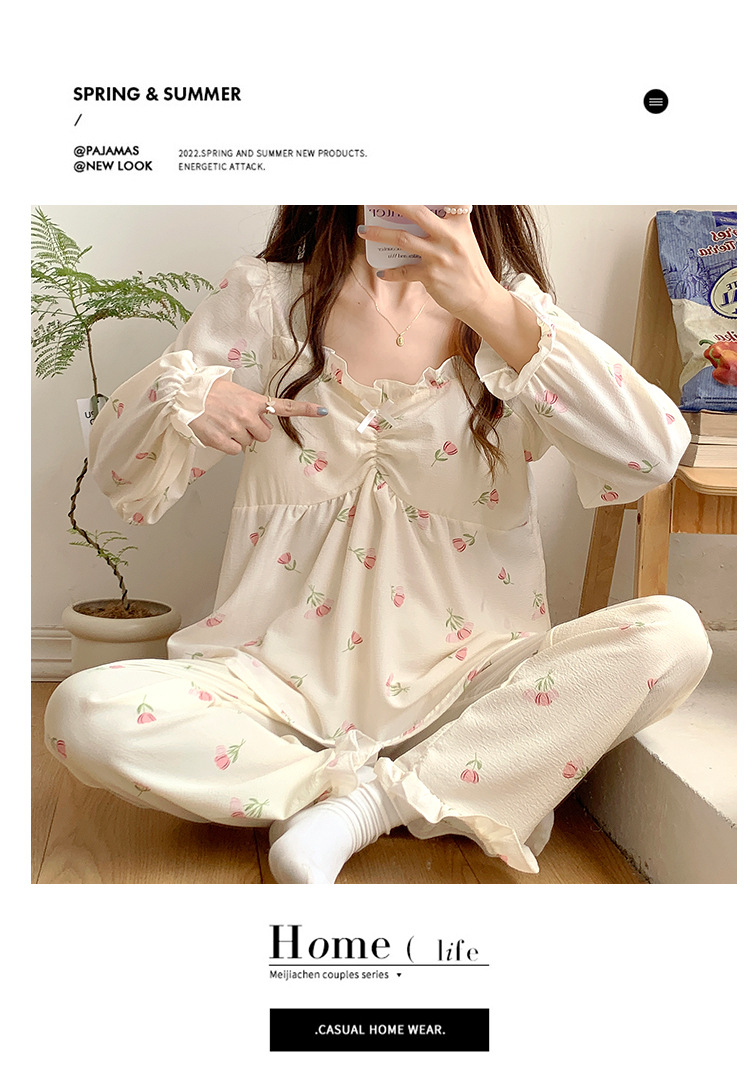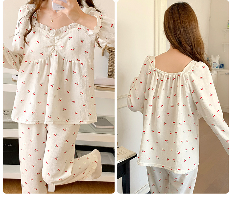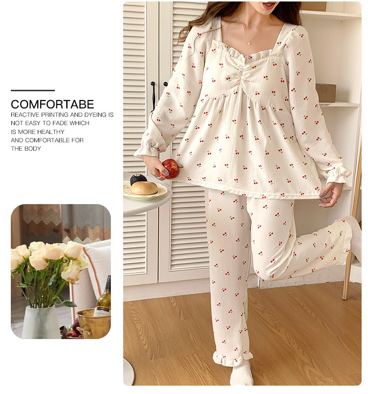春秋款睡衣女【带胸垫长袖 花边套装】甜美公主风 V领薄款 家居服女