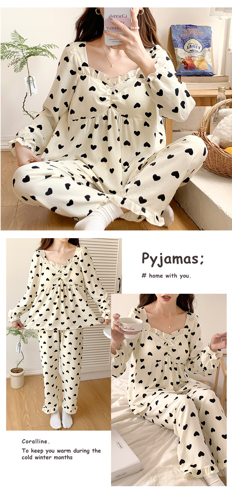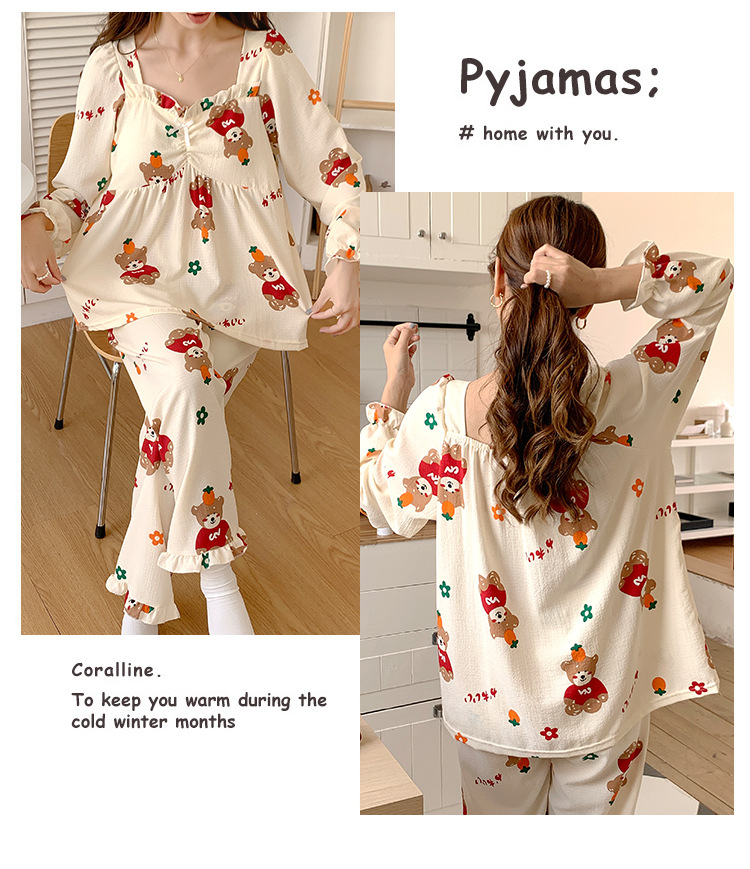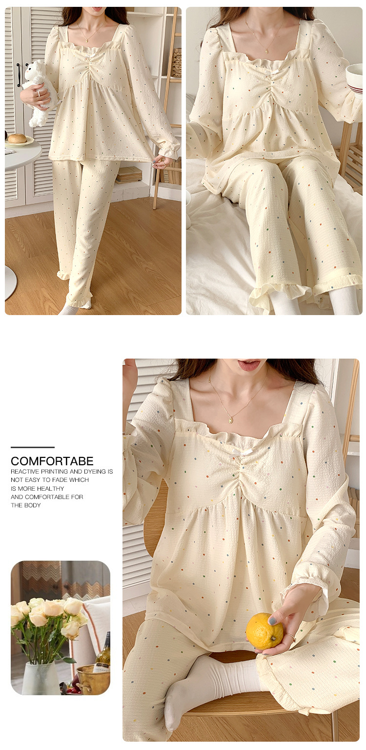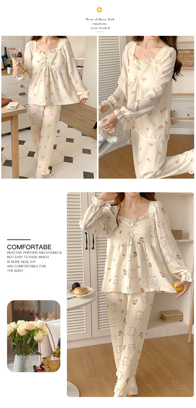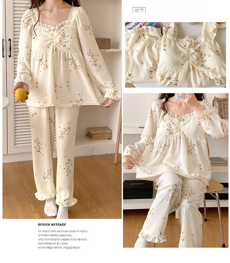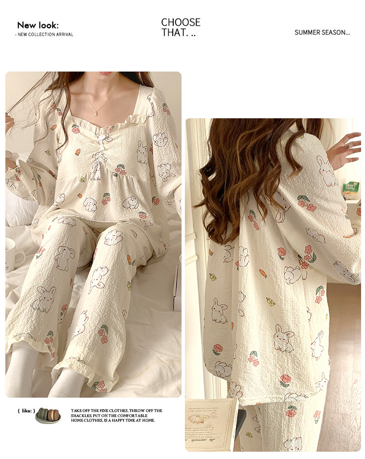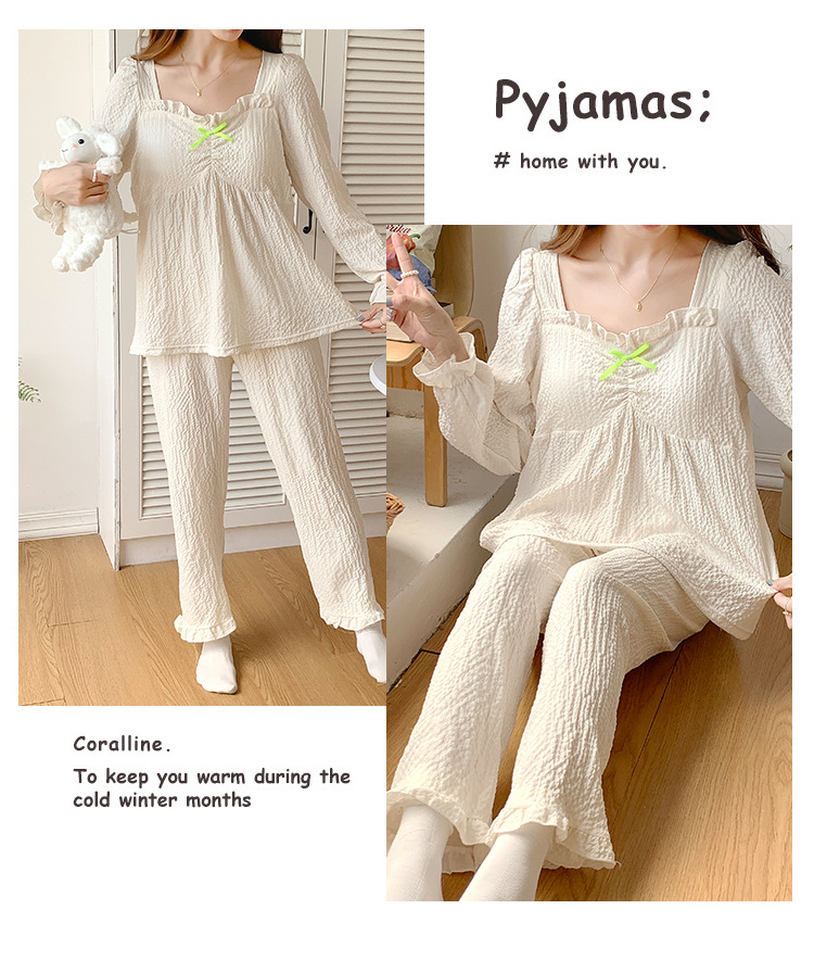 春秋款睡衣女【带胸垫长袖 花边套装】甜美公主风 V领薄款 家居服女