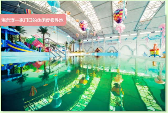 这里涵盖了世界温泉文化、海泉汤院、水上娱乐、特色休闲、美味餐饮、主题客房、海泉宝贝亲子乐园等众多休闲娱乐项目,带给您沉浸式的休闲放松度假体验。