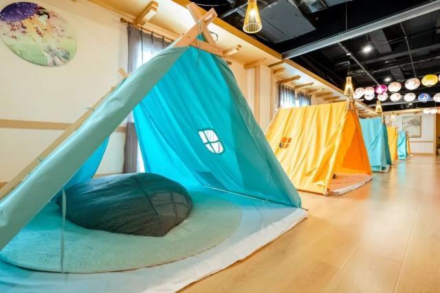 温泉三楼为特色休闲区和餐饮区,特色休闲区设置有 网红鸟笼休息区、帐篷休息区、蜂巢休息区、懒人沙发息区 ,是您放松身心、休闲娱乐的绝佳场所。