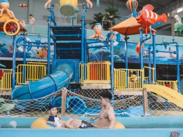海泉湾一二楼设置了丰富多样的水上休闲娱乐项目:漂流河、激情水寨、亲子水吧喇叭滑梯、海浪池、活力池,无边际戏水区、欢乐碰碰船、家庭互动滑梯、微型喇叭滑梯、水疗池。