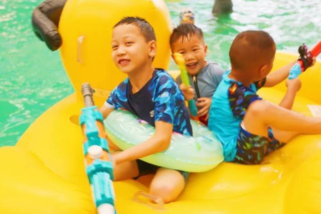 漂流河、全长175米,与亲朋好友拿上水枪、乘坐皮筏打水仗,顺水漂流,仿佛置身于山水之间,使人忘记了都市的喧嚣与烦杂。