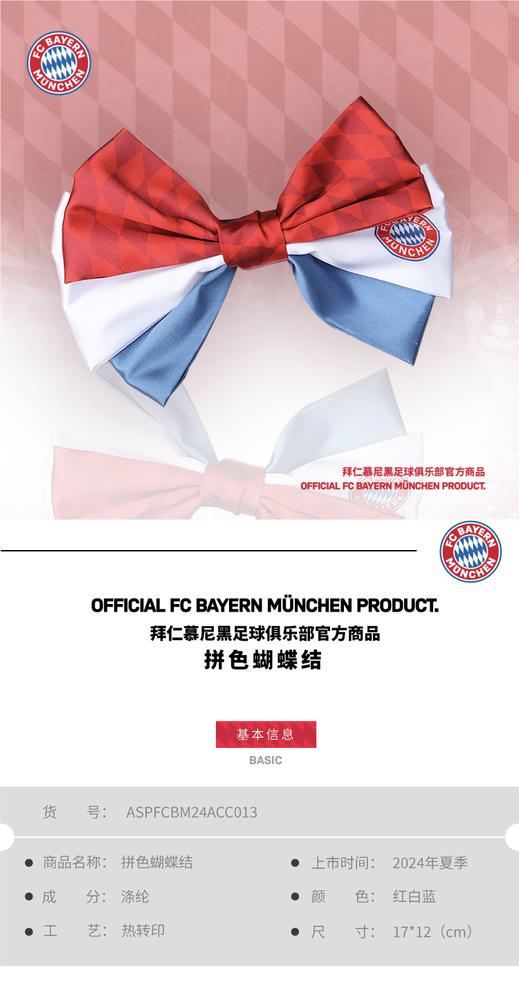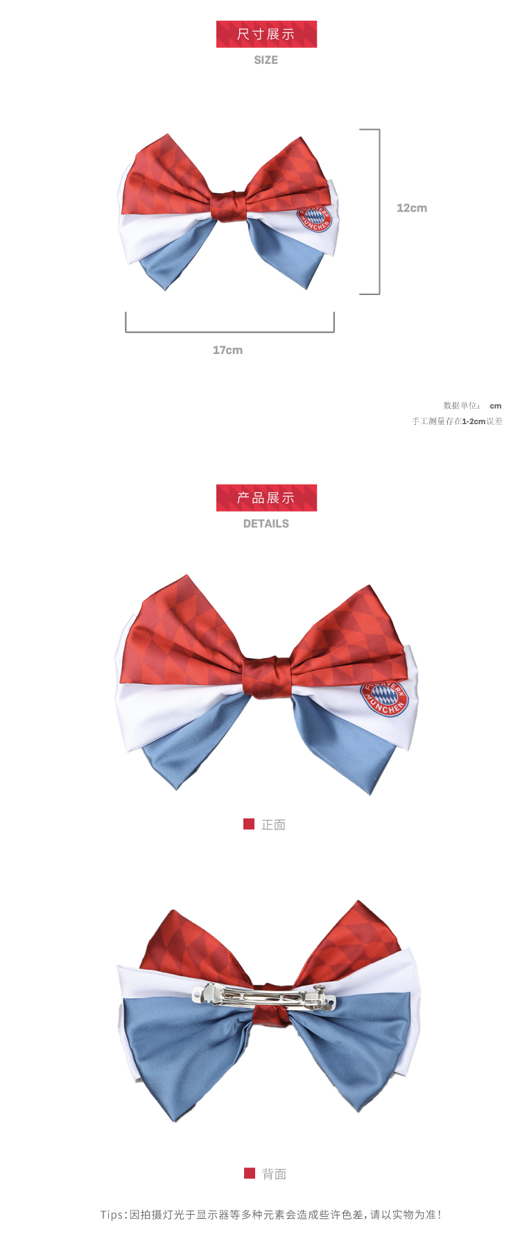 【官方正版】拜仁慕尼黑足球俱乐部 | 红白蓝拼色蝴蝶结发卡头饰女生足球迷周边礼物