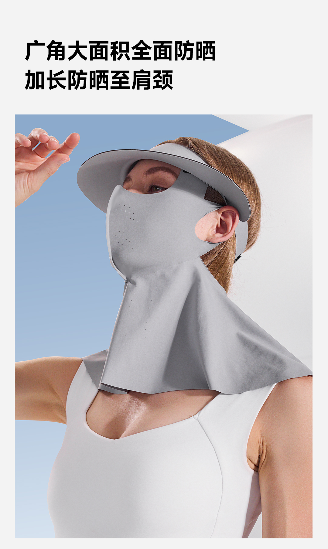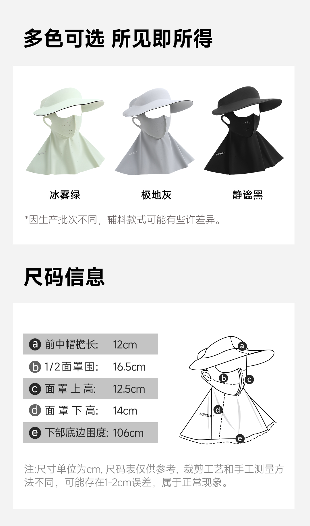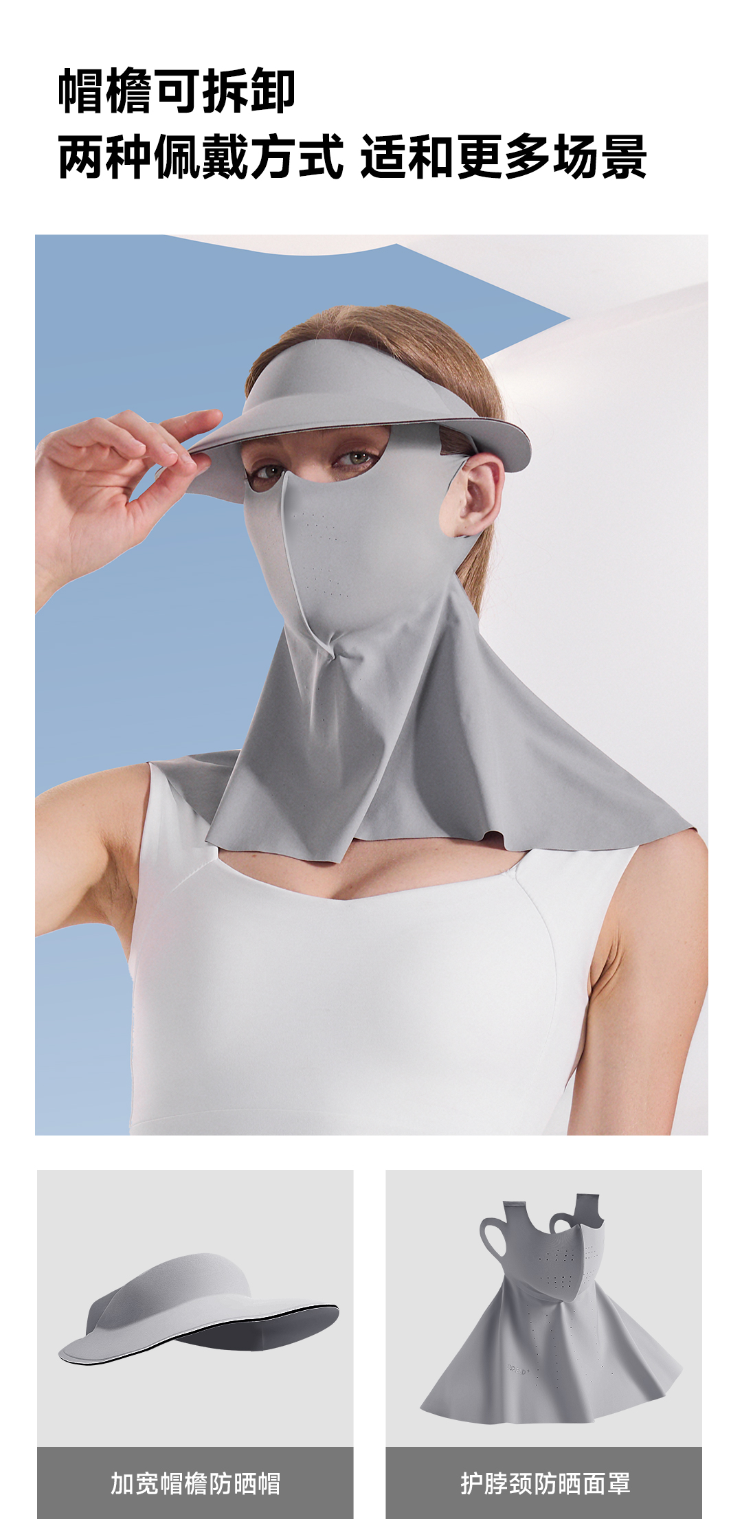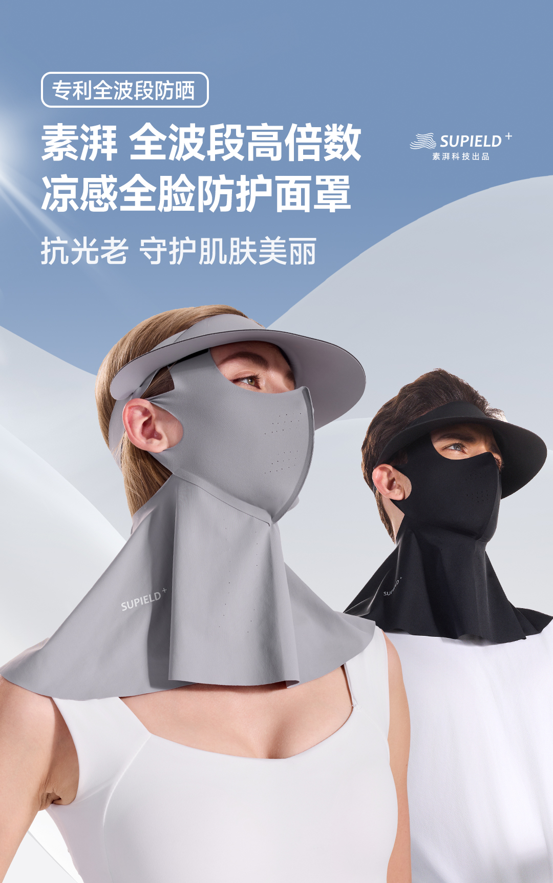 素湃Supield面颈一体防晒面罩女全脸防紫外线脸基尼帽檐可拆口罩F3508