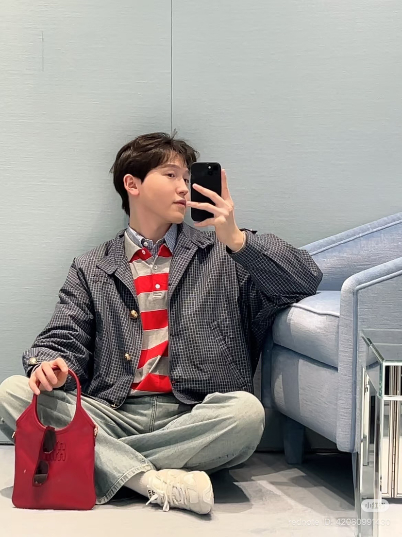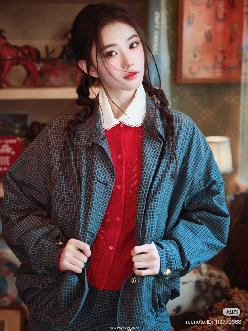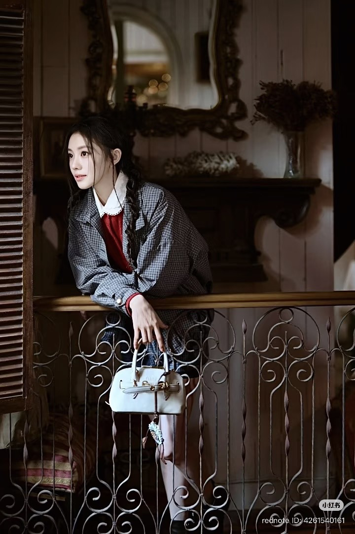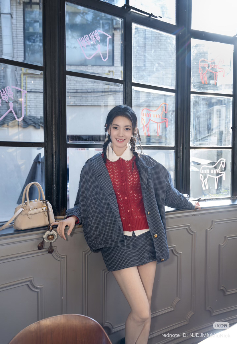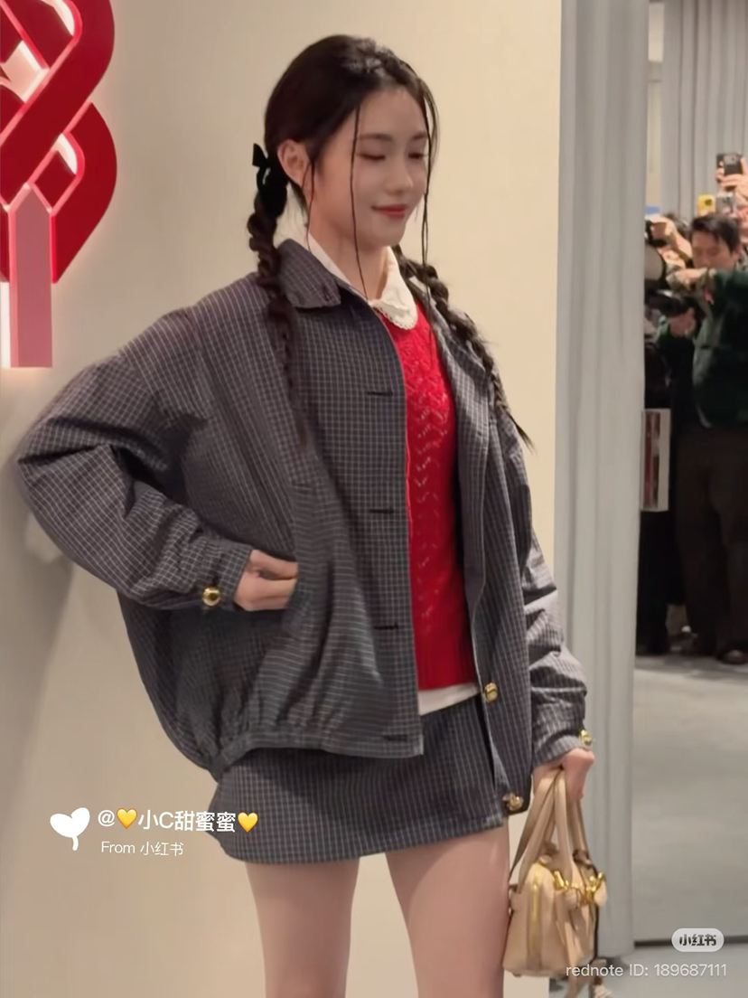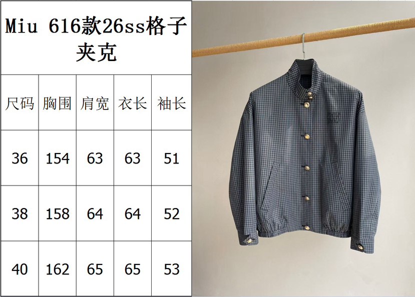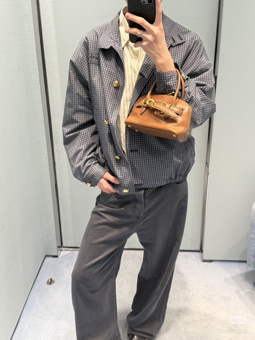 312-3 渠道圆正 miu 26ss 刘浩存 格纹夹克外套