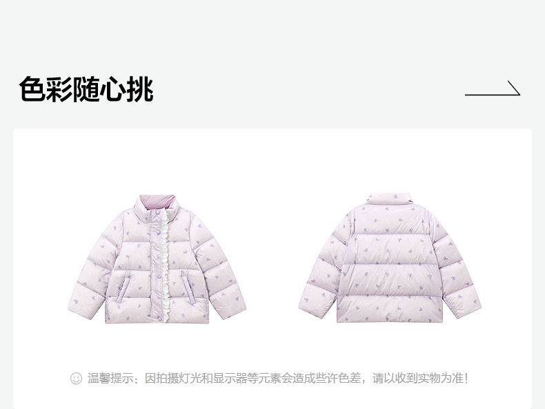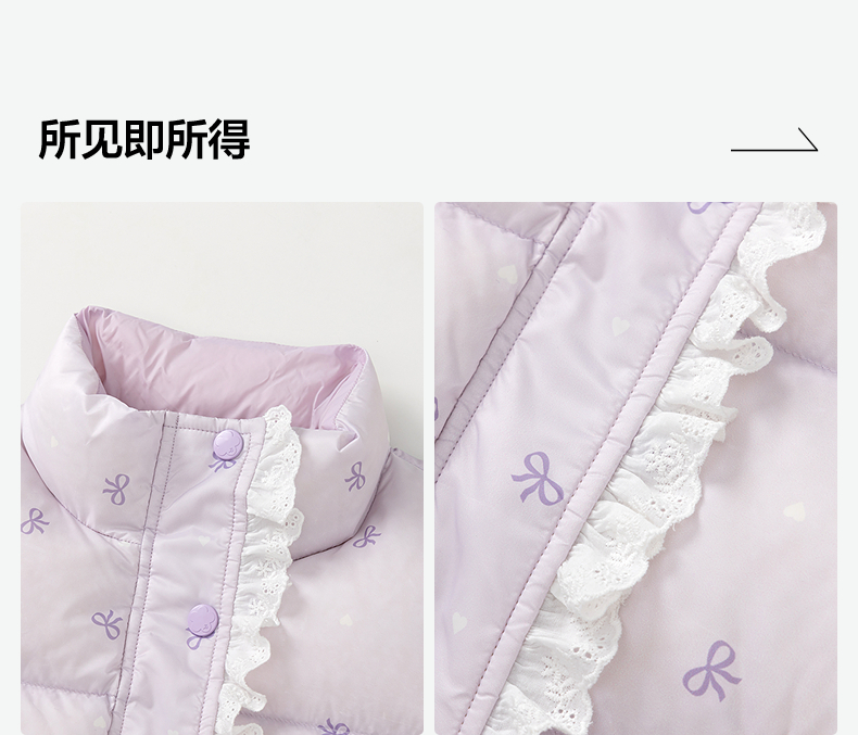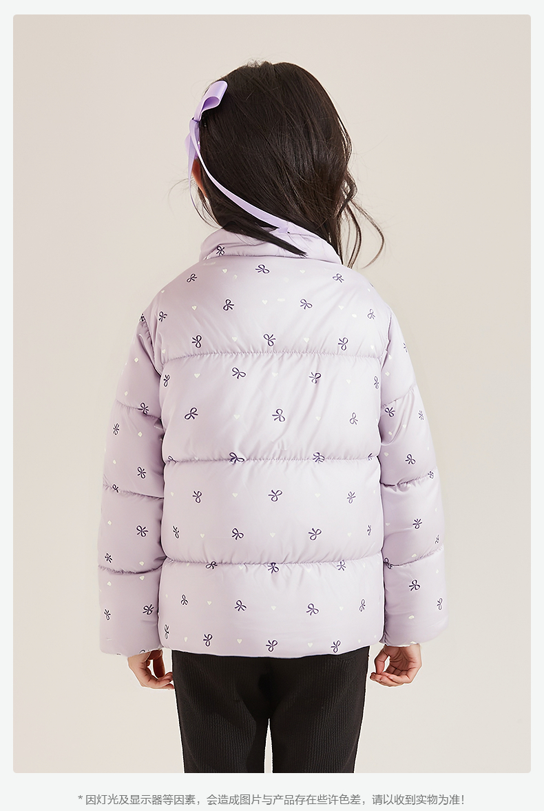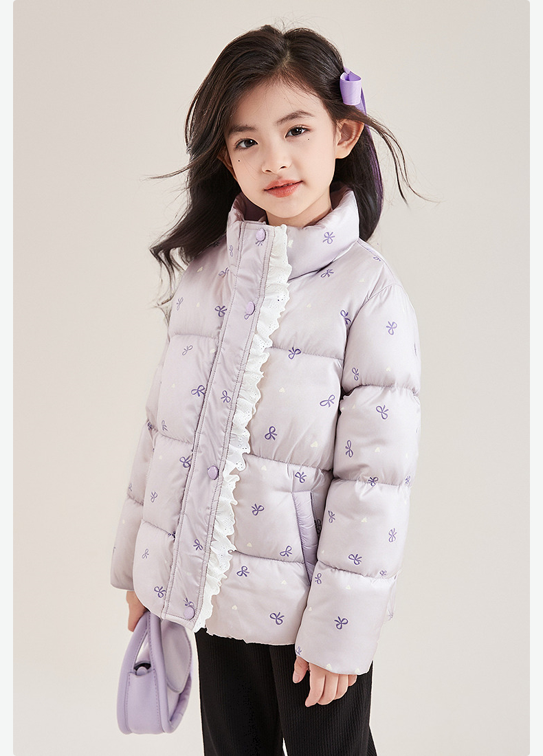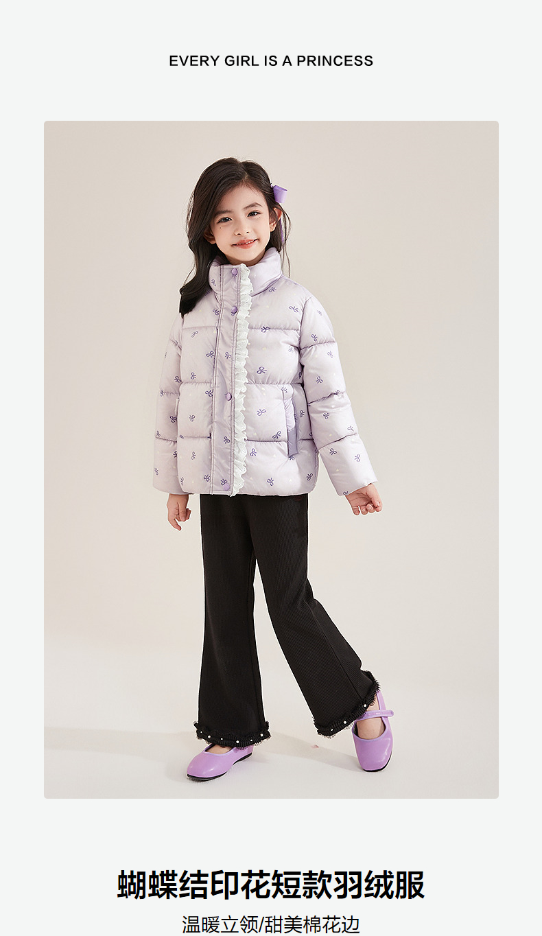 笛莎Deesha 童装女童羽绒服2025冬新款女童蝴蝶结印花短款羽绒服