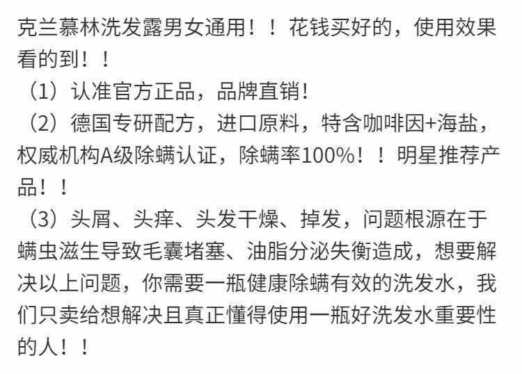 克兰慕林洗发水控油去油去屑止痒除螨洗发露顺滑柔顺持久留香男女