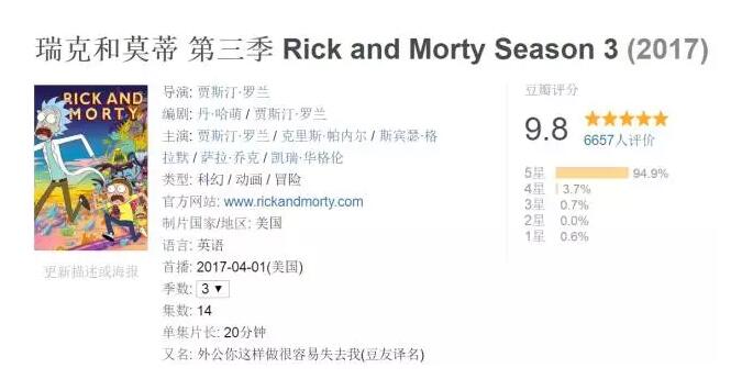 这部神剧2013年年底就在美国推出,当时在豆瓣评分就已经高达9.6/9.7(第1季和第二季),在IMDb 9.3,由Dan Harmon创作开发,他还有部作品《废柴联盟》。而在2017年推出的第三季,豆瓣评分9.8,人气高到吓人!借着这个好势头,官方发售了动画的设定资料集The Art of Rick and Morty《瑞克和莫蒂设定集》。