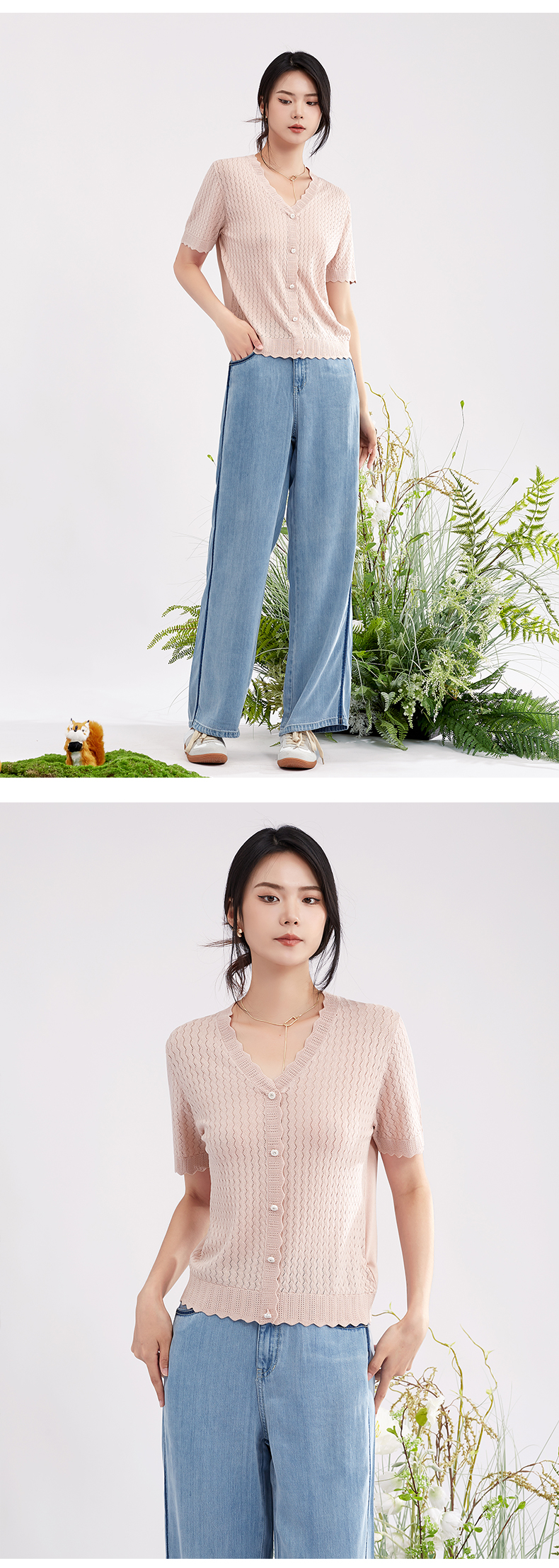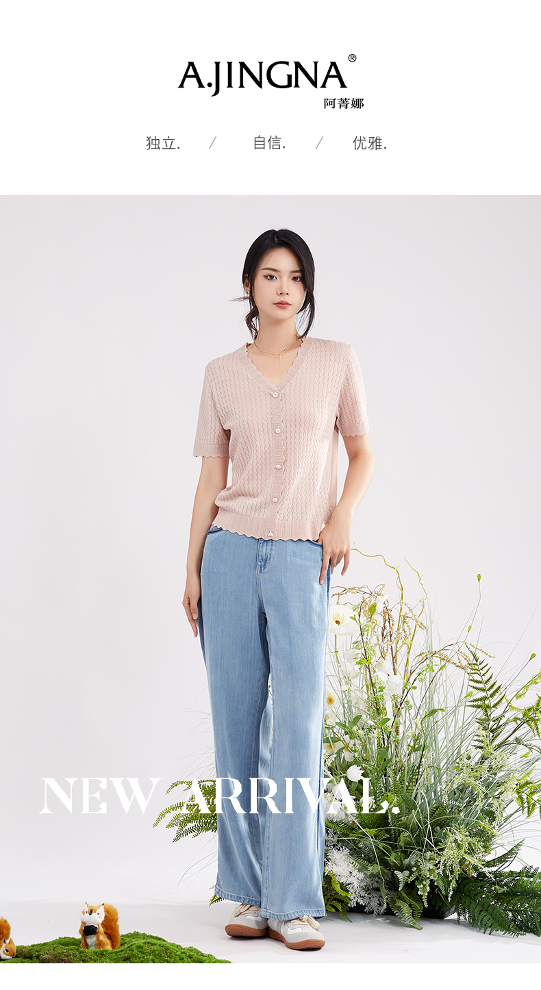 【商场同款】阿菁娜温柔甜美纯色木耳边针织衫A28X301011