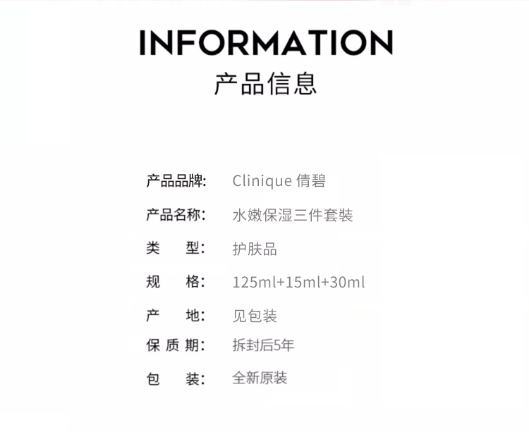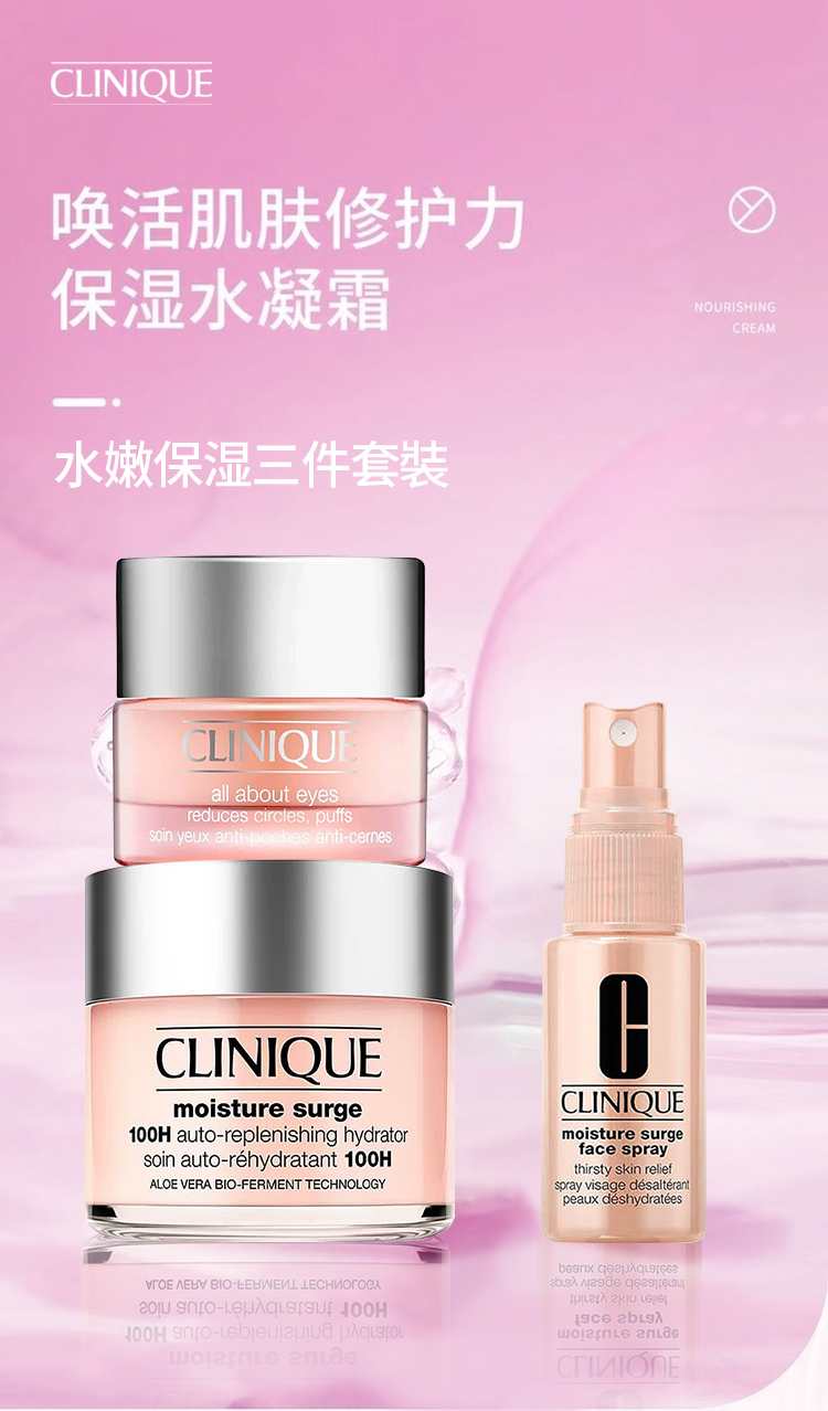 【跨境】Clinique倩碧水嫩保湿三件套裝 (粉霜125ml+眼霜15ml+喷雾30ml) 效期27年10月
