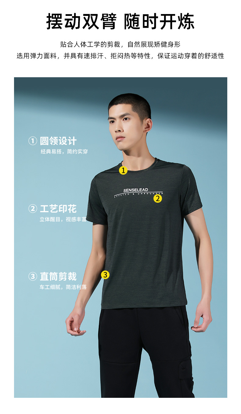 Senselead森力/男式速干圆领短T恤 SSAJG81013