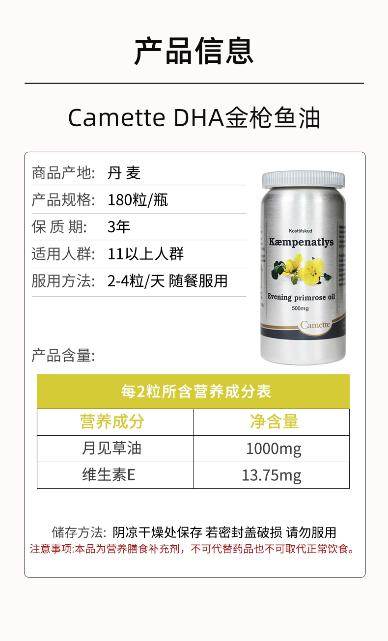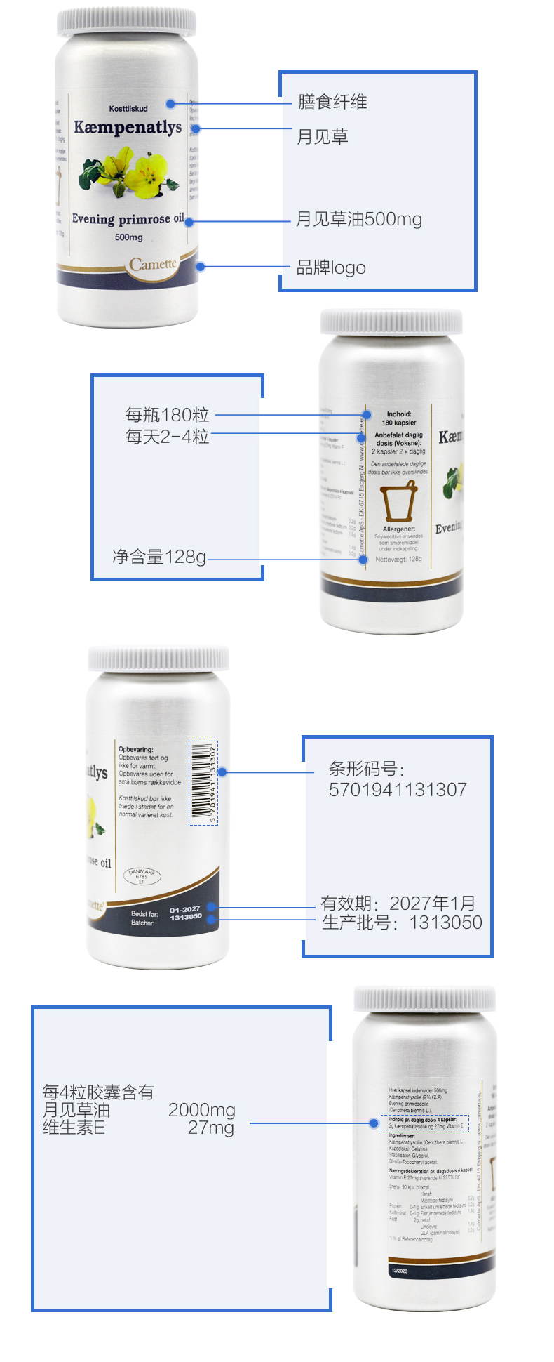 丹麦Camette凯麦特 月见草油 180粒/瓶