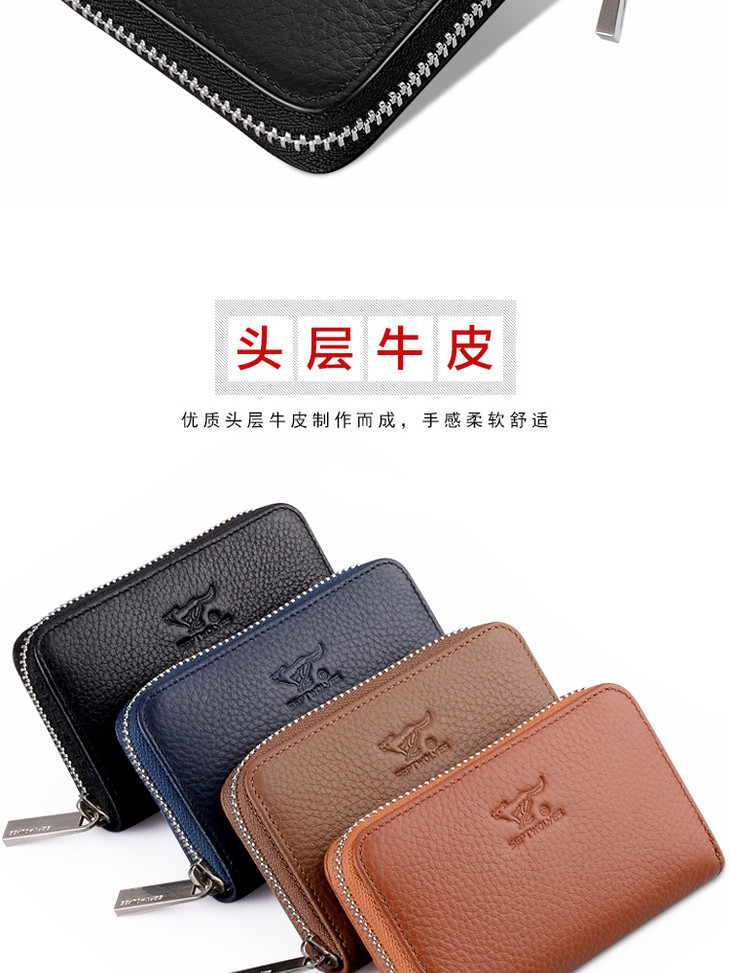 七匹狼 男士风琴卡包名片夹多功能钱包男卡套 男女牛皮卡片夹证件包 3A3064221-01黑色