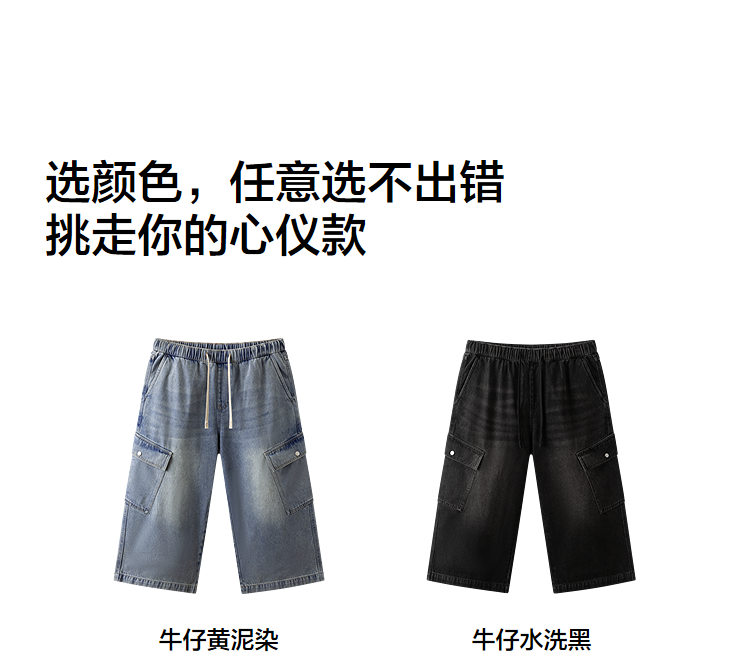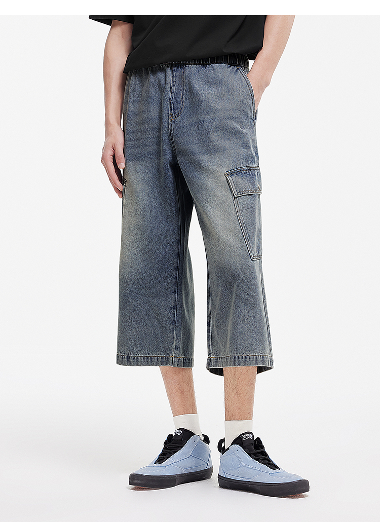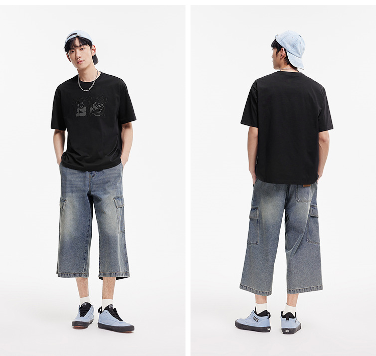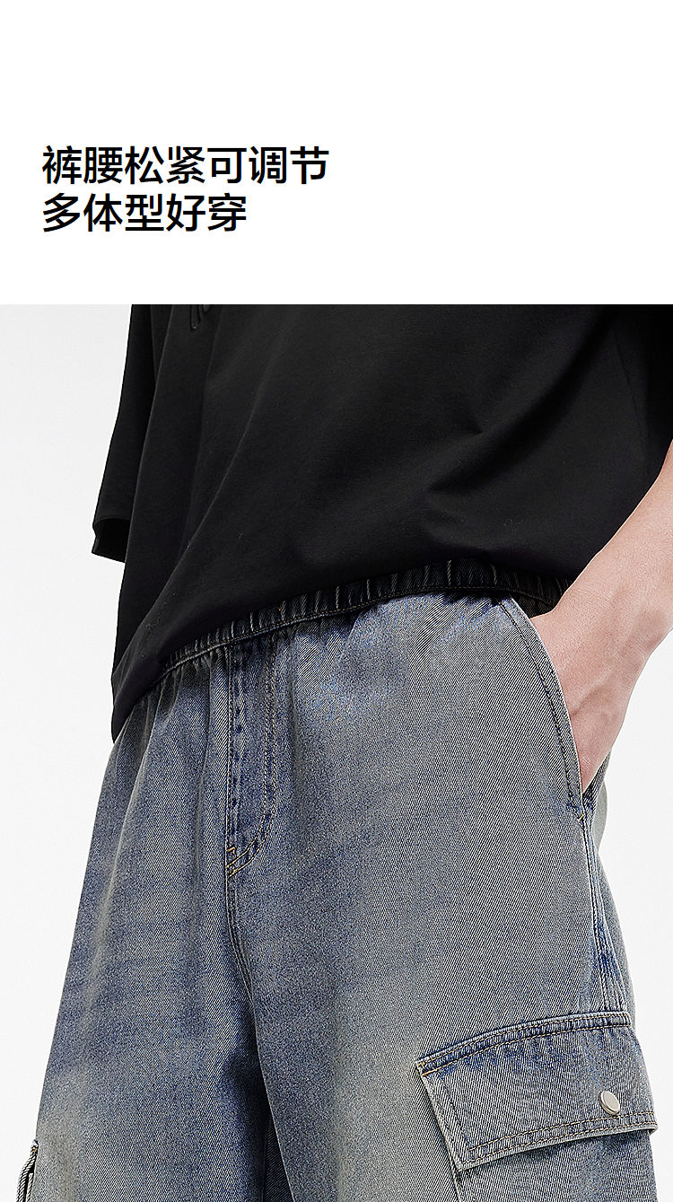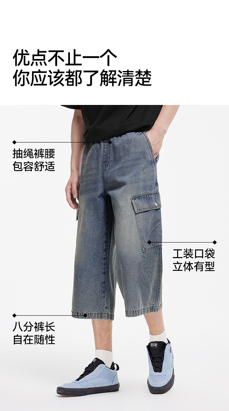 森柔牛仔|森马牛仔裤男复古做旧工装八分裤2025夏新款宽松直筒裤