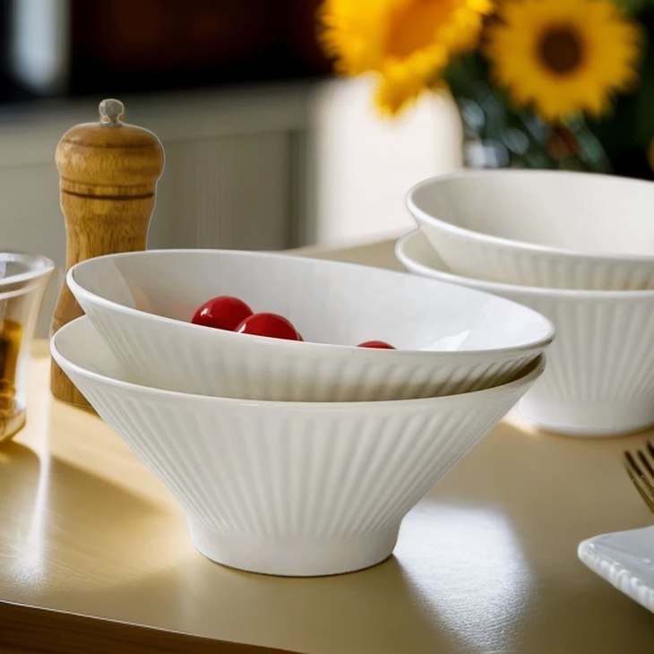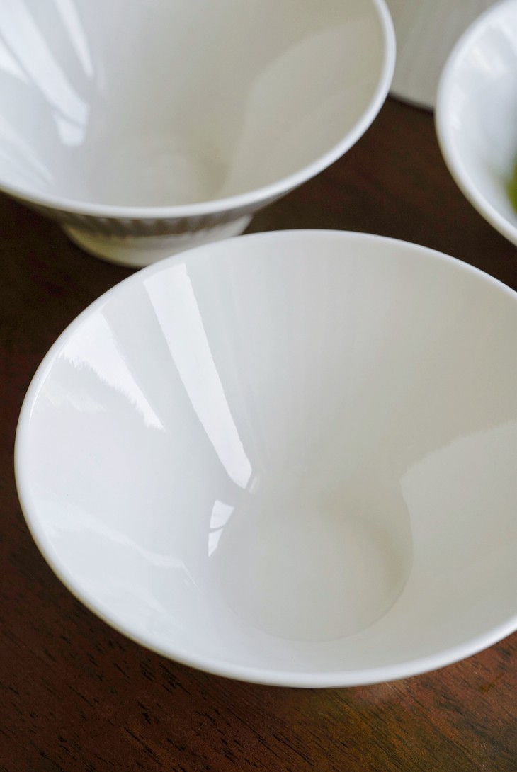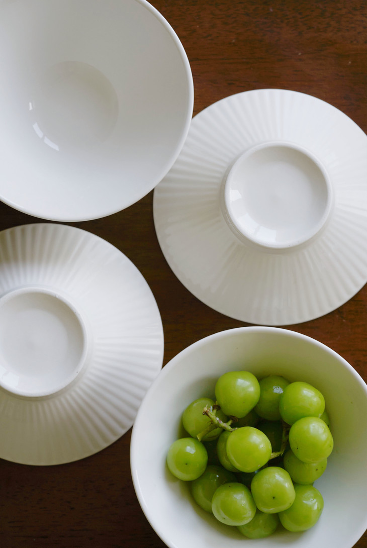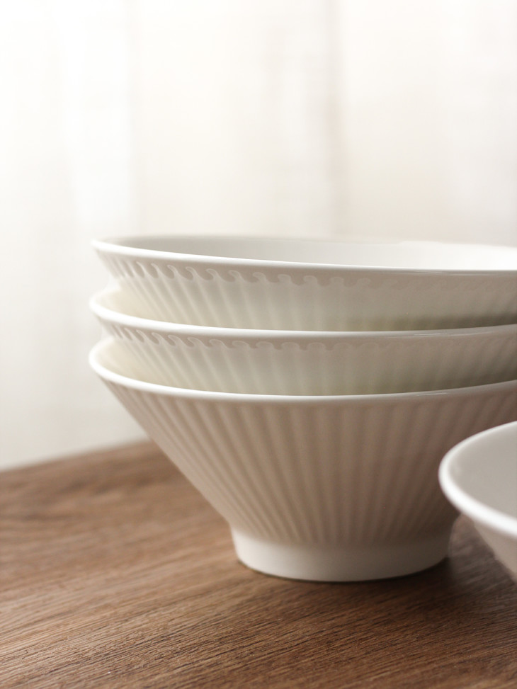🔺 优选上等高岭土 约1300℃高温烧制 🔺釉下彩工艺 釉色匀净莹透,久用如新 纯白色+浮雕就是奢侈 🔺整个餐具抛光细腻 耐低温、耐煮、不易碎 🔺中高足设计端放更平稳,更防烫 可微波炉和烤箱使用 🔺8英寸的大小 一组6个 用来吃面条、盛汤、盛粥、装水果,容量正好