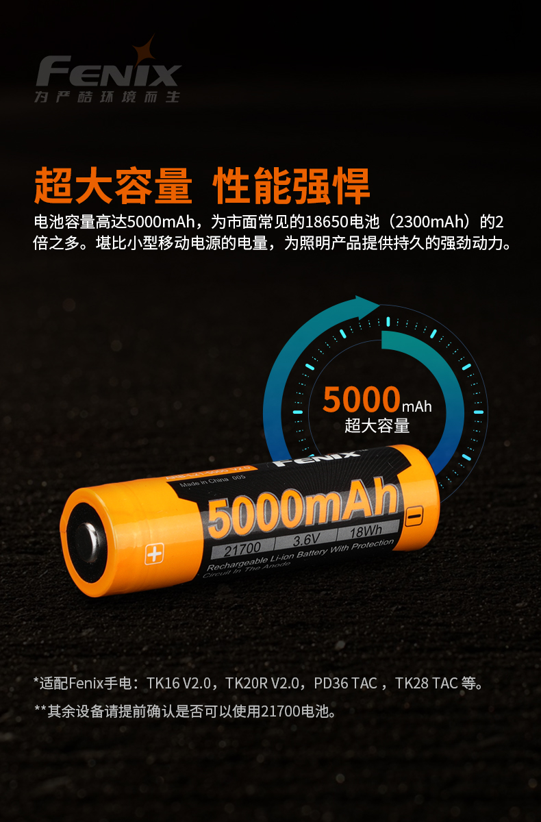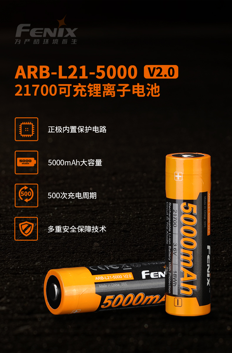 Fenix菲尼克斯 ARB-L21-5000 V2.0手电电池大容量21700可充锂电池