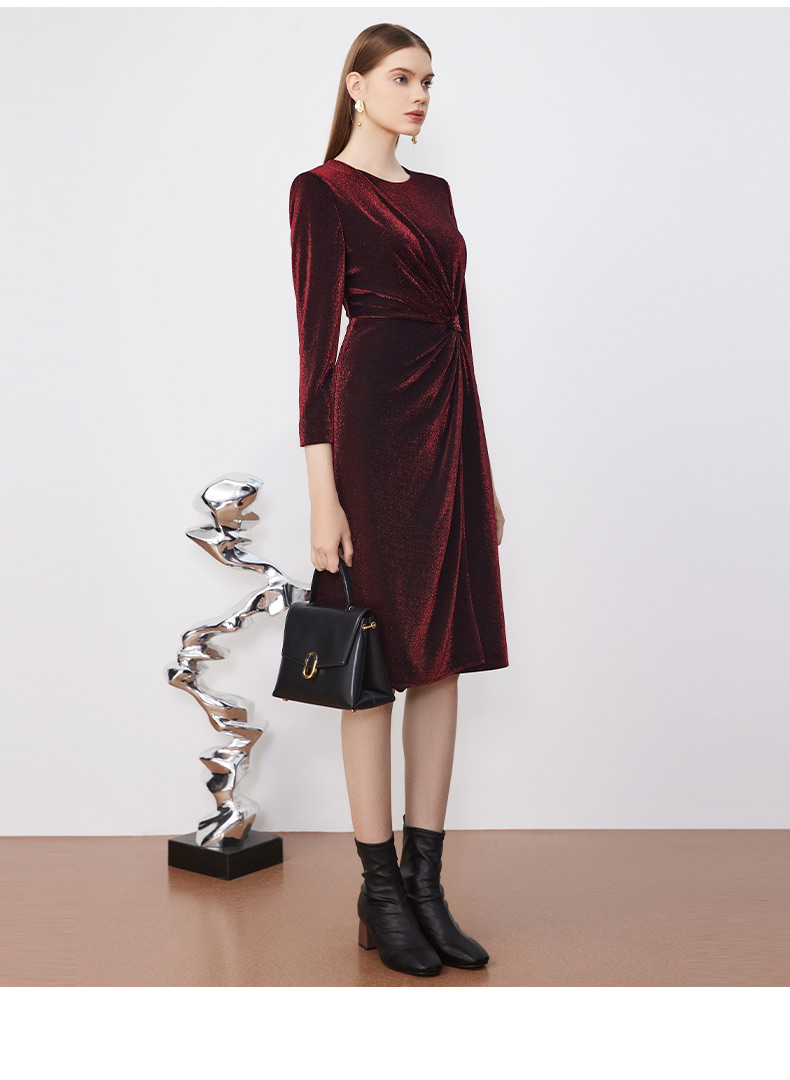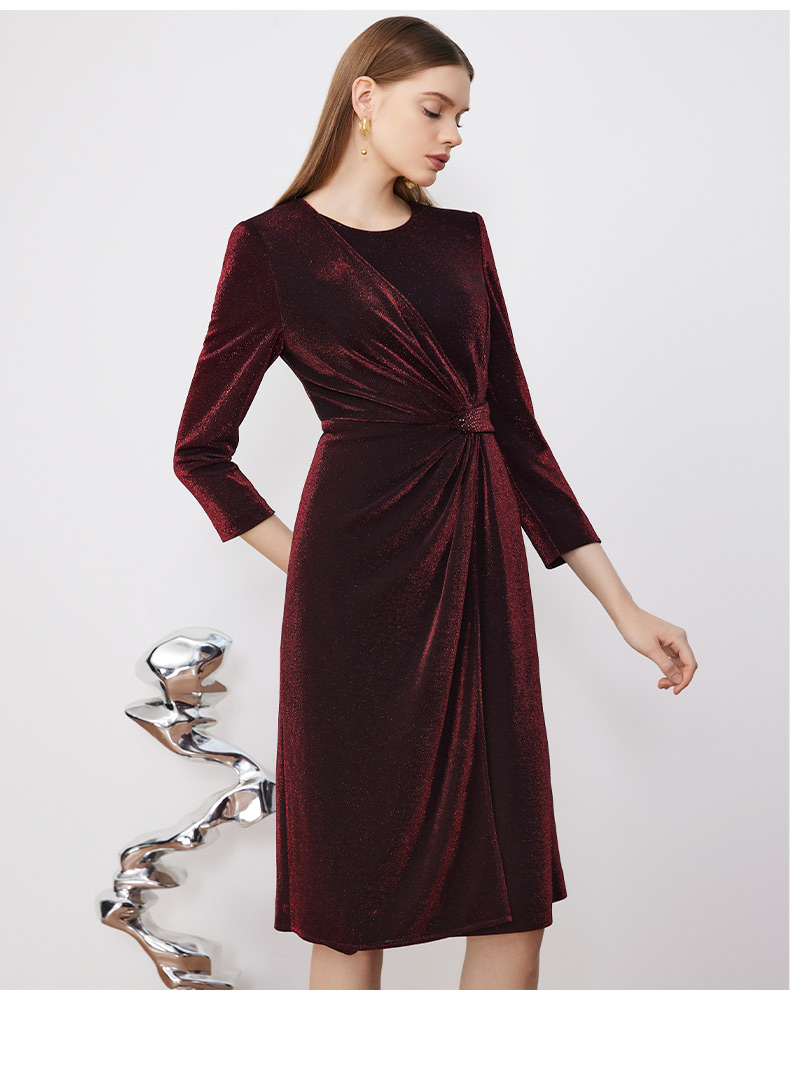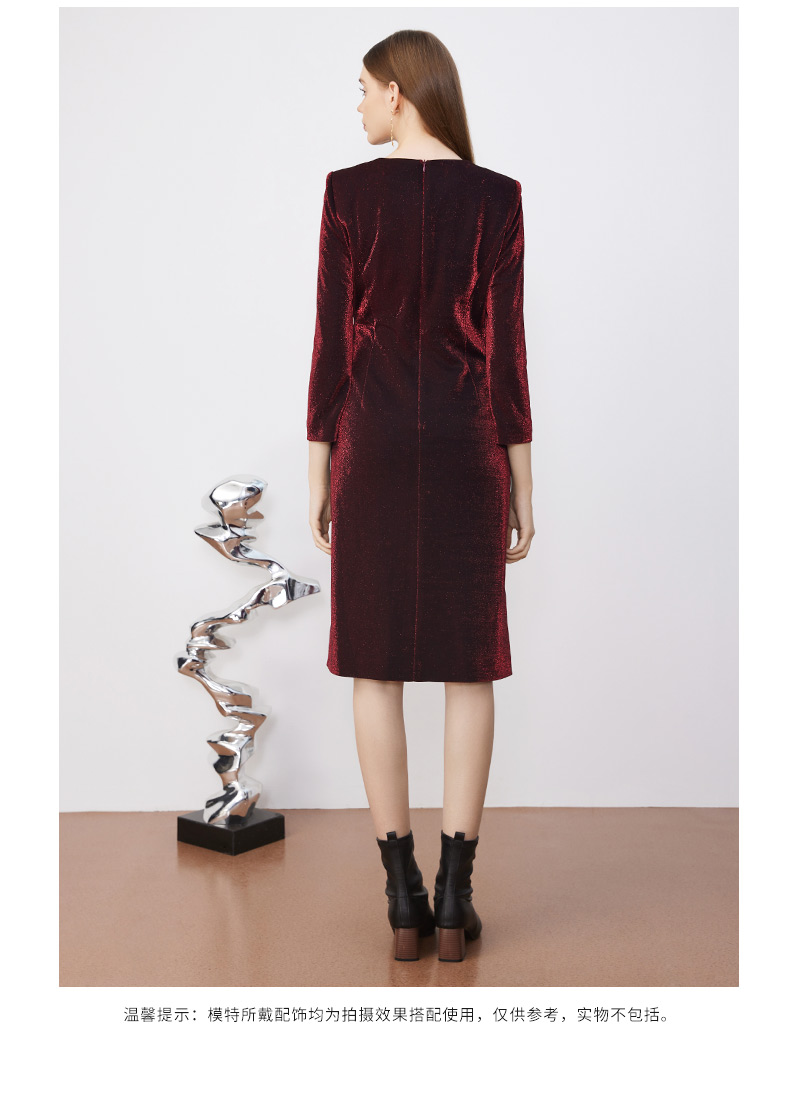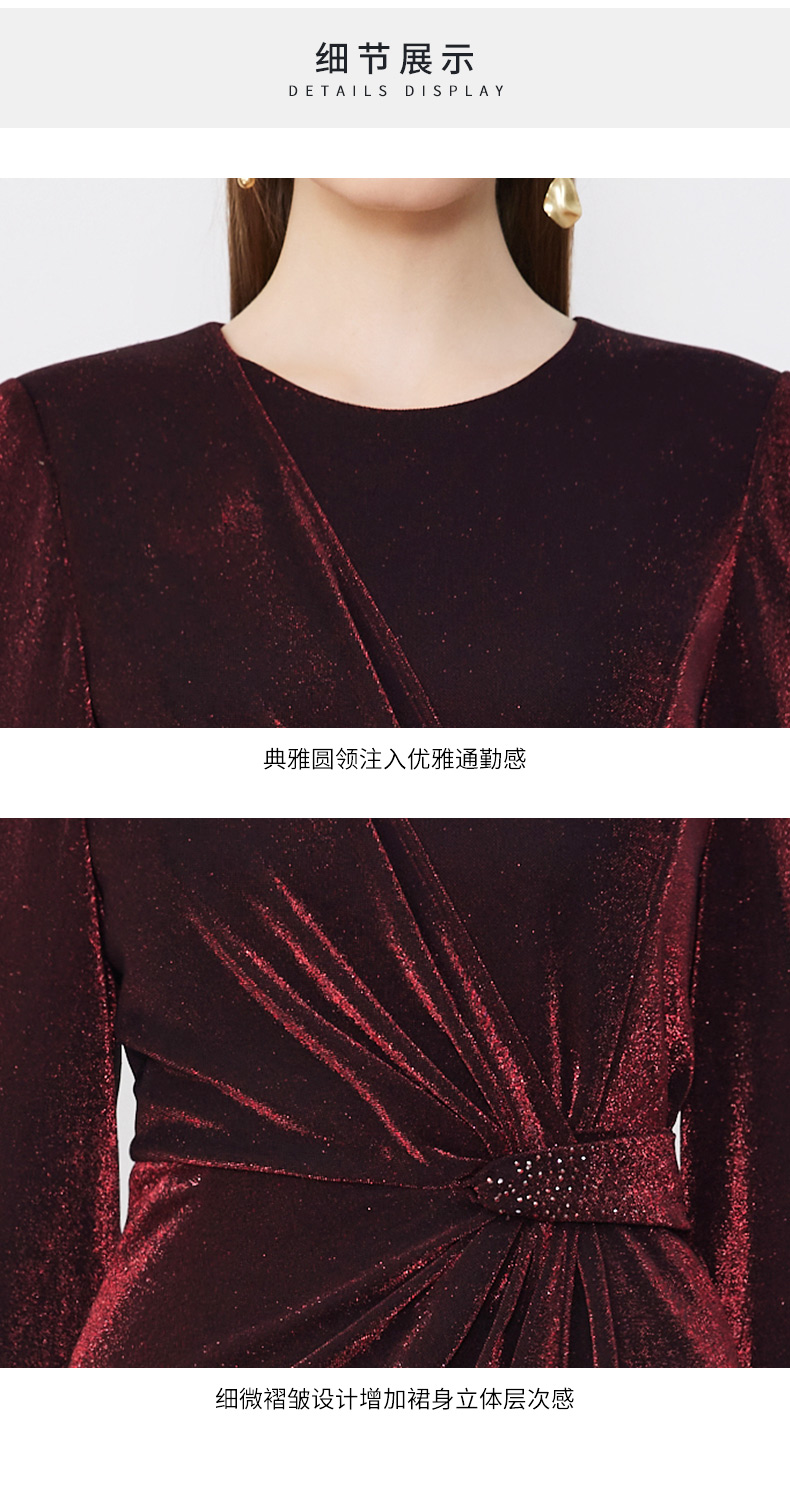 皮尔卡丹女装连衣裙气质时尚修身通勤宴会褶皱连衣裙P3341E3876T0