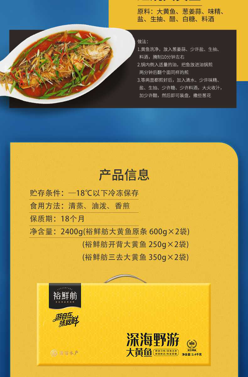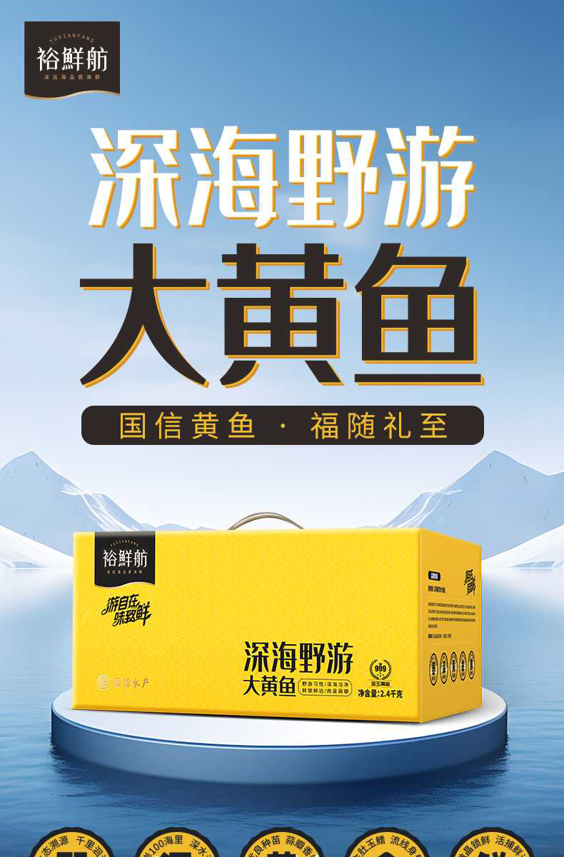 裕鲜舫 金玉满堂999礼盒 大黄鱼原条600g*2条+300g*2条+250g*2条 2.4kg
