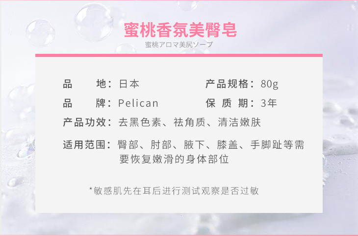 日本 Pelican沛丽康 桃子私密护理粉嫩PP皂 美臀皂 80g