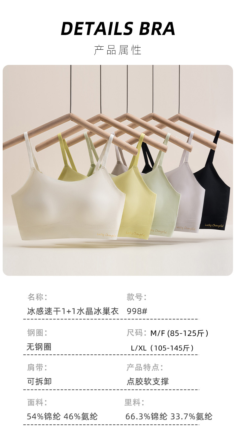 茵曼情超薄冰感速干1+1水晶冰巢衣 内衣998#